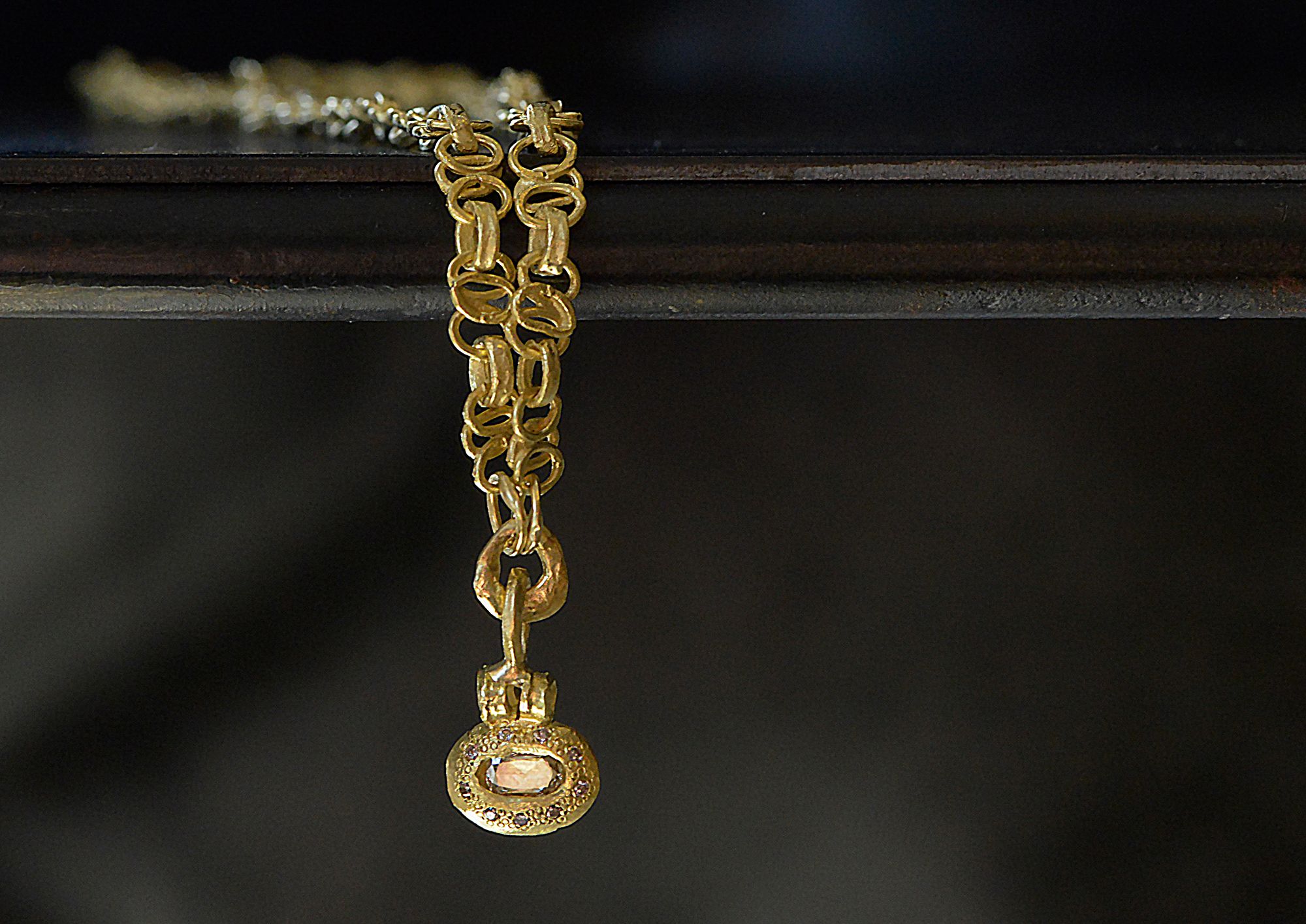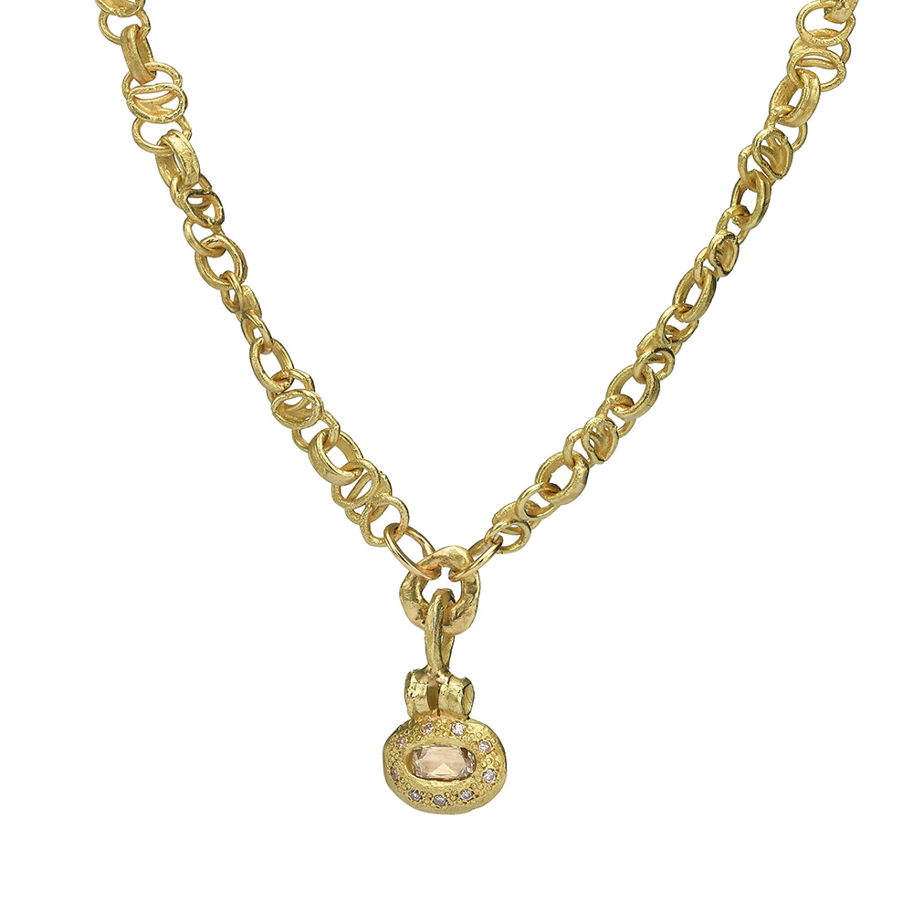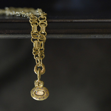 18K Gold delicate link necklace with pendant