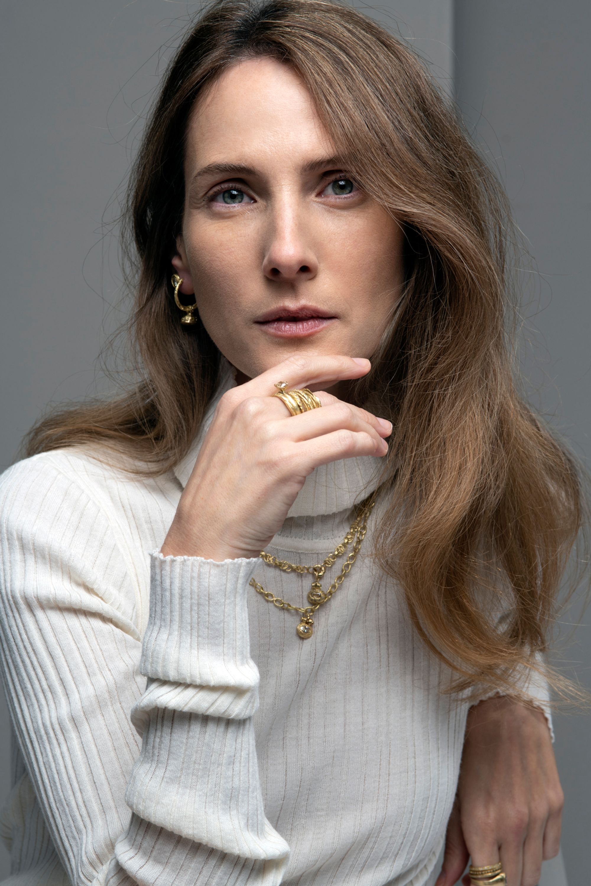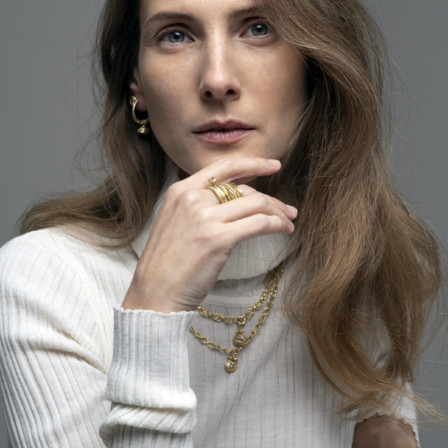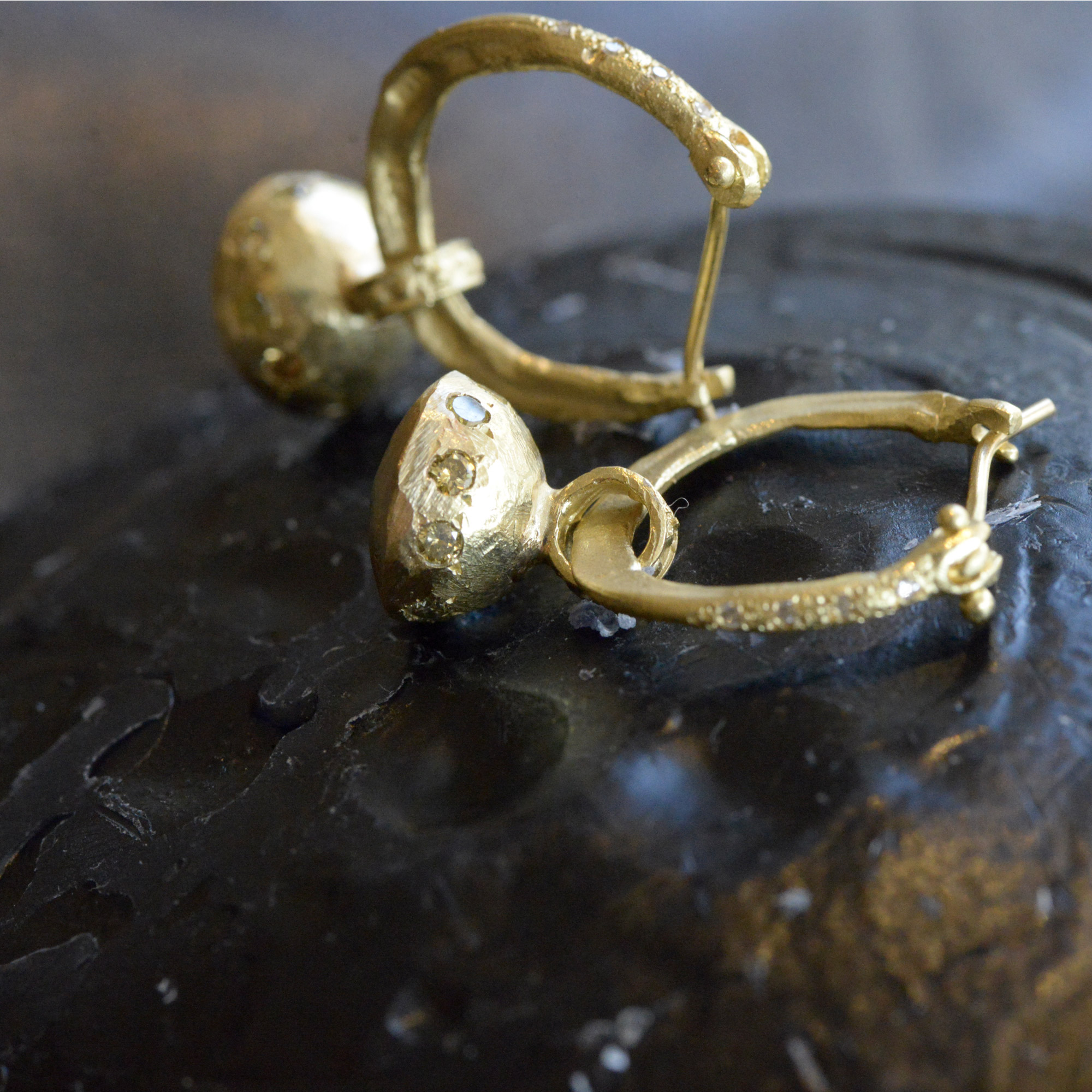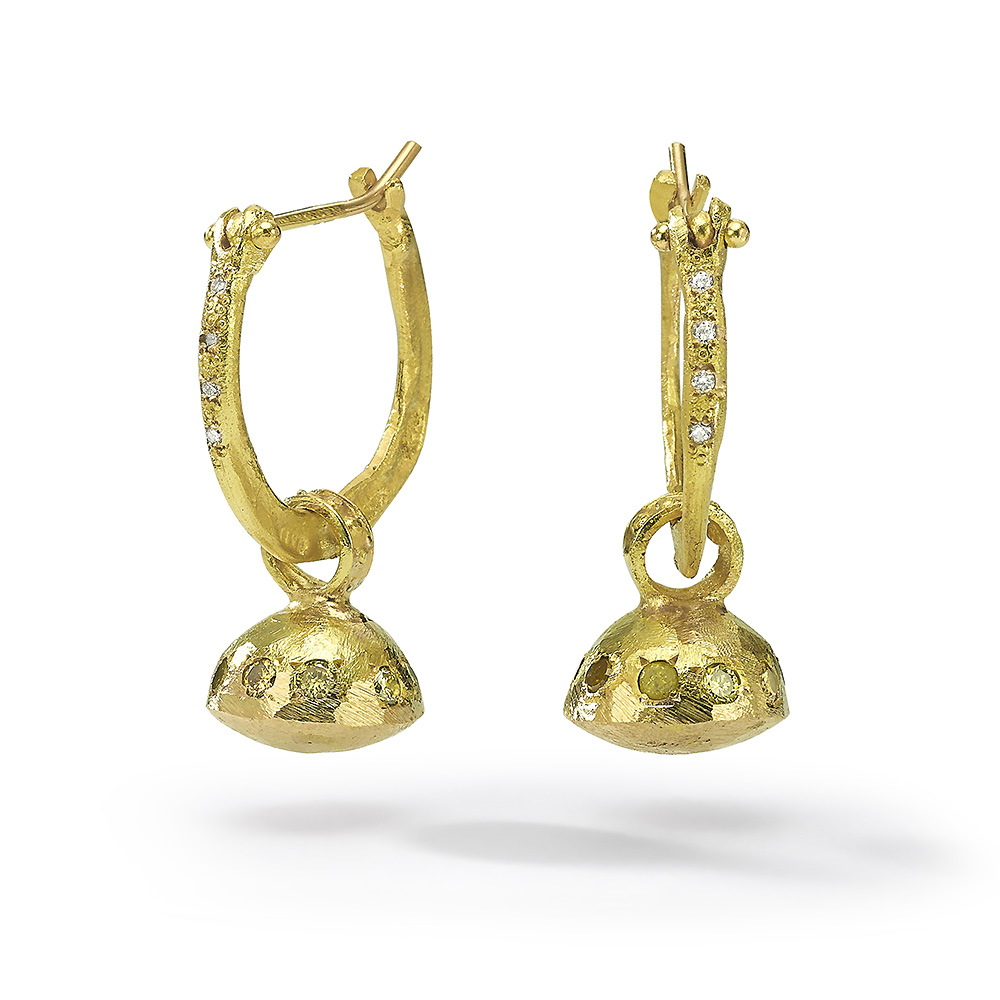 18K Gold large smooth hoop earrings with bell-shaped pendant