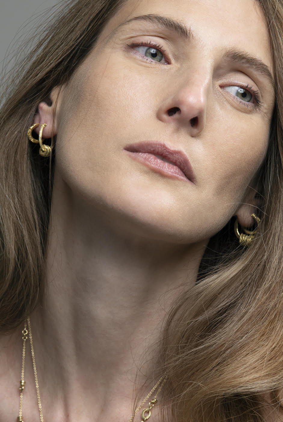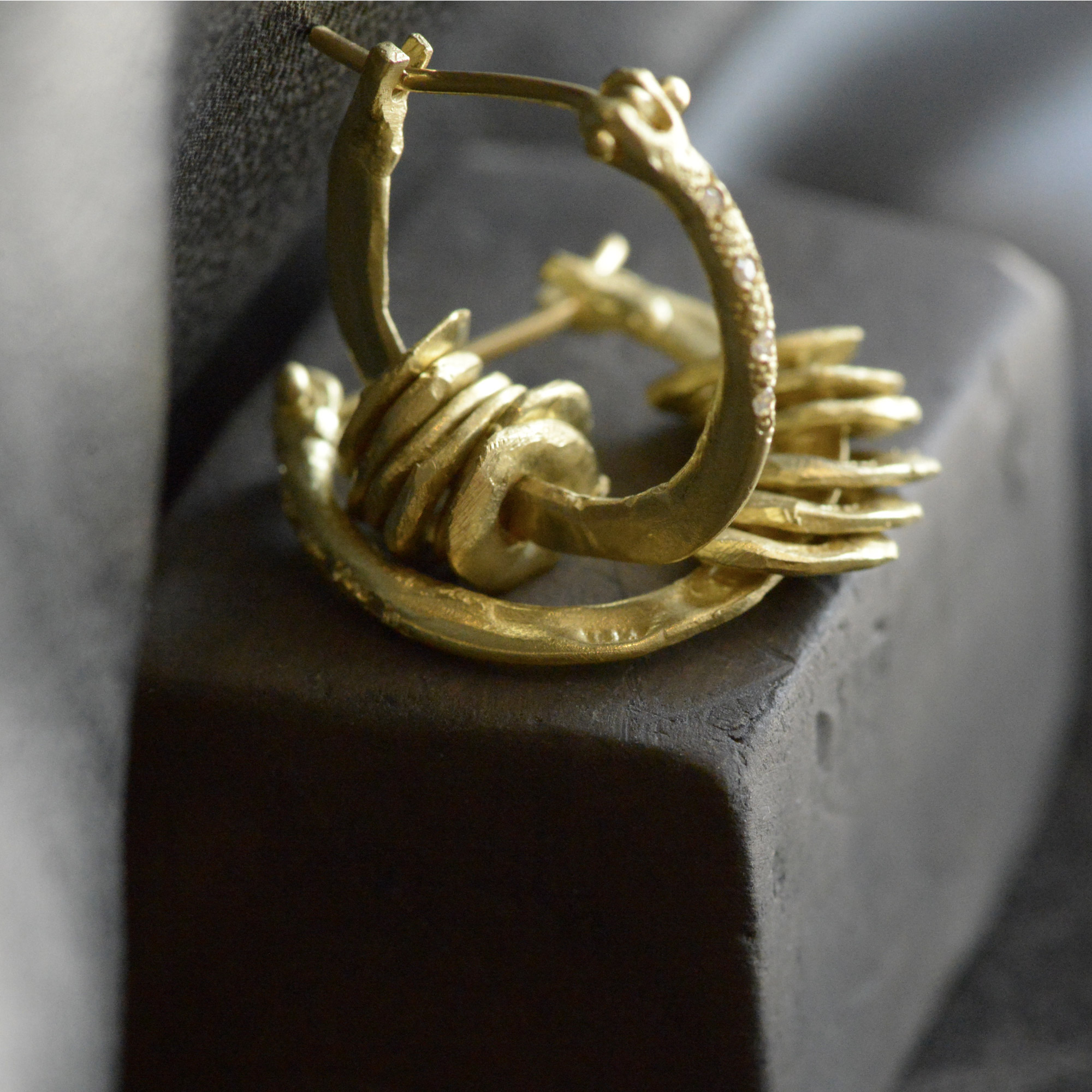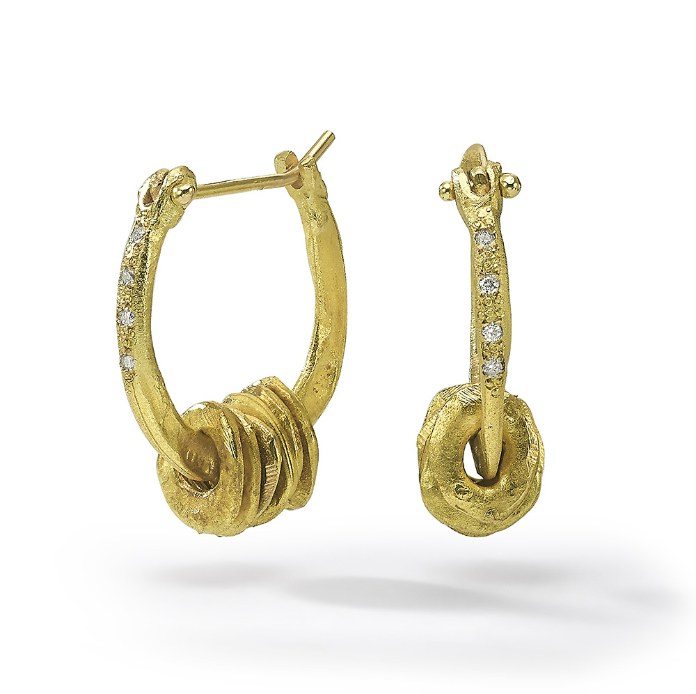 18K Gold large smooth hoop earrings with links