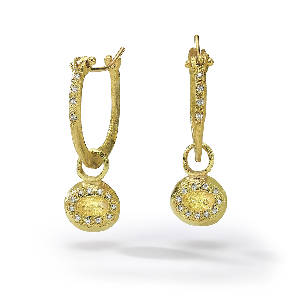 18K Gold large smooth hoop earrings with oval pendant