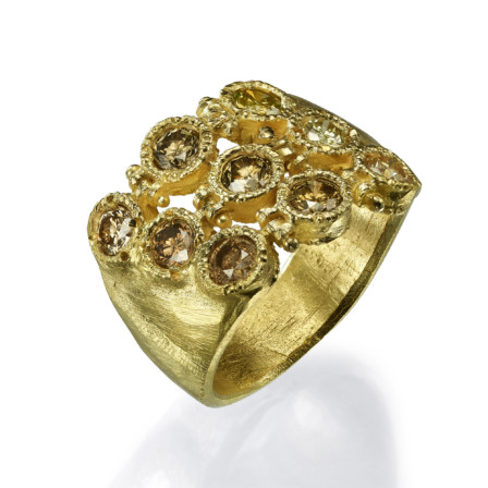 18k Gold ring set with nine champagne diamonds