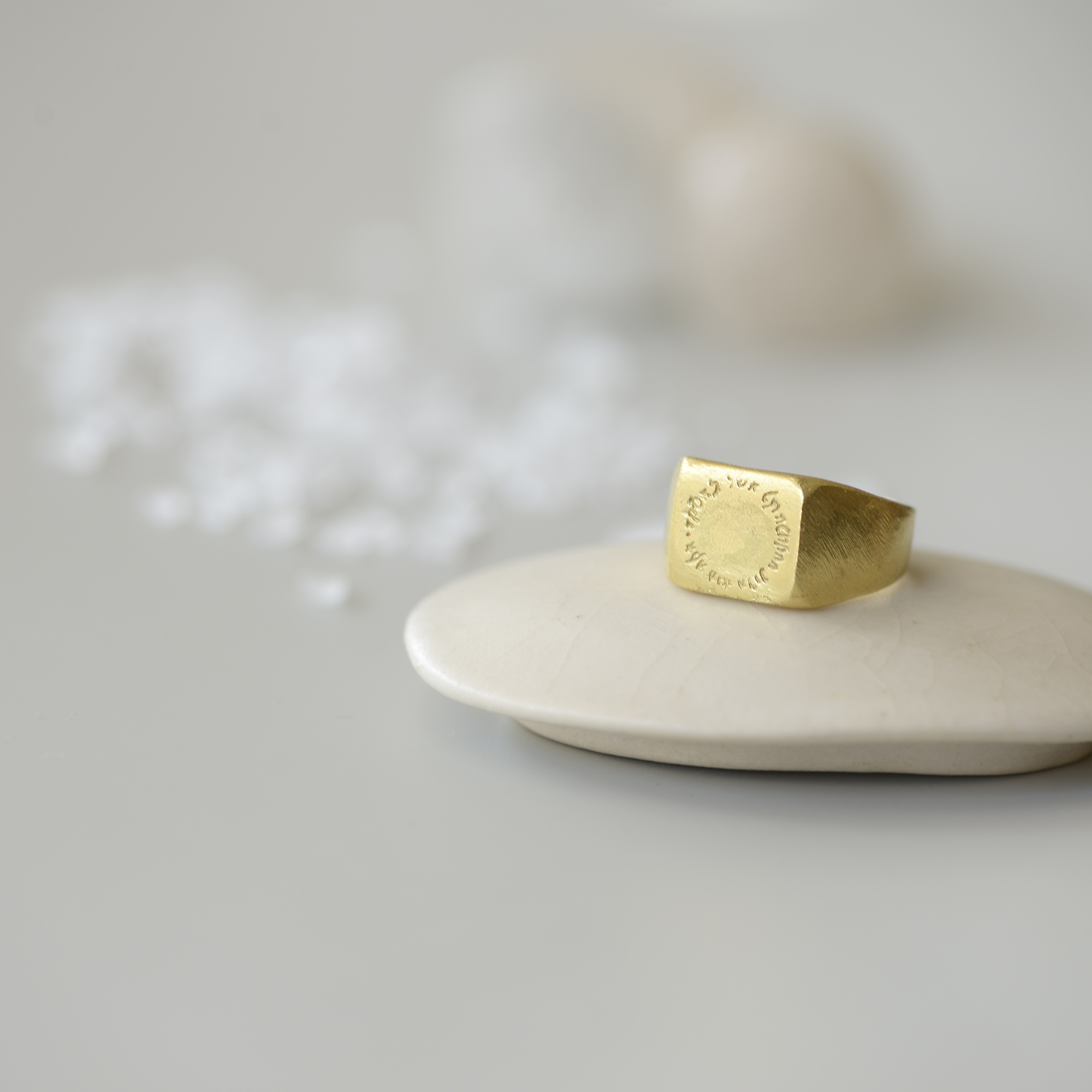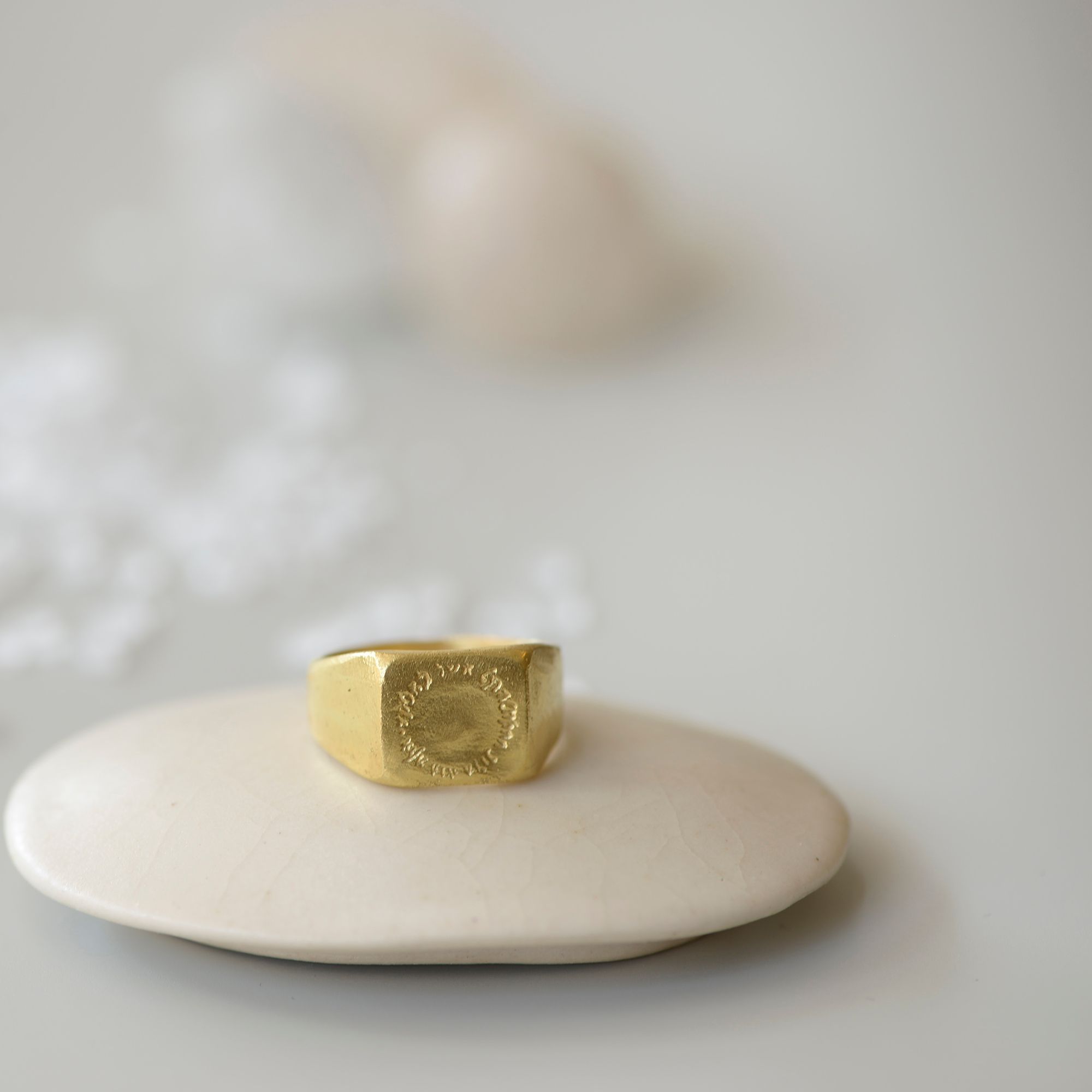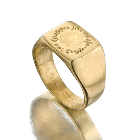 18k Gold squared seal ring with an ancient Hebrew engraving