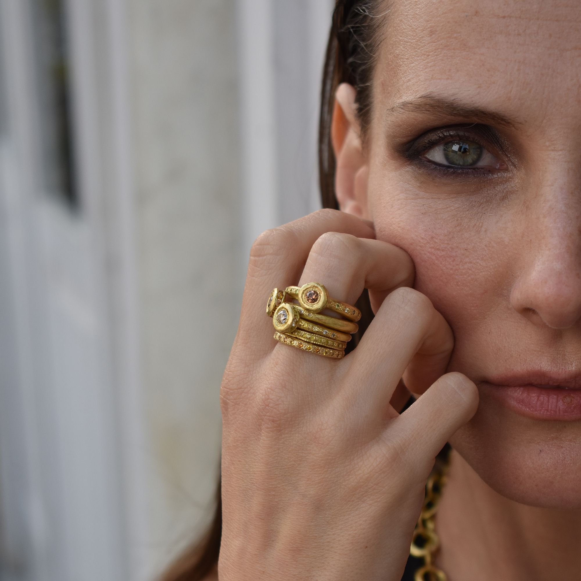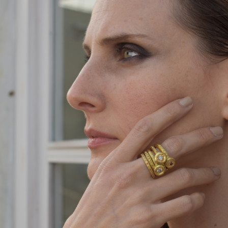 “Texture was at the very top of my list. The perfection of the flaw, the beauty in something that’s not yet complete. The solid gold, against our fragile lives, and eternal beauty, against disintegration…”