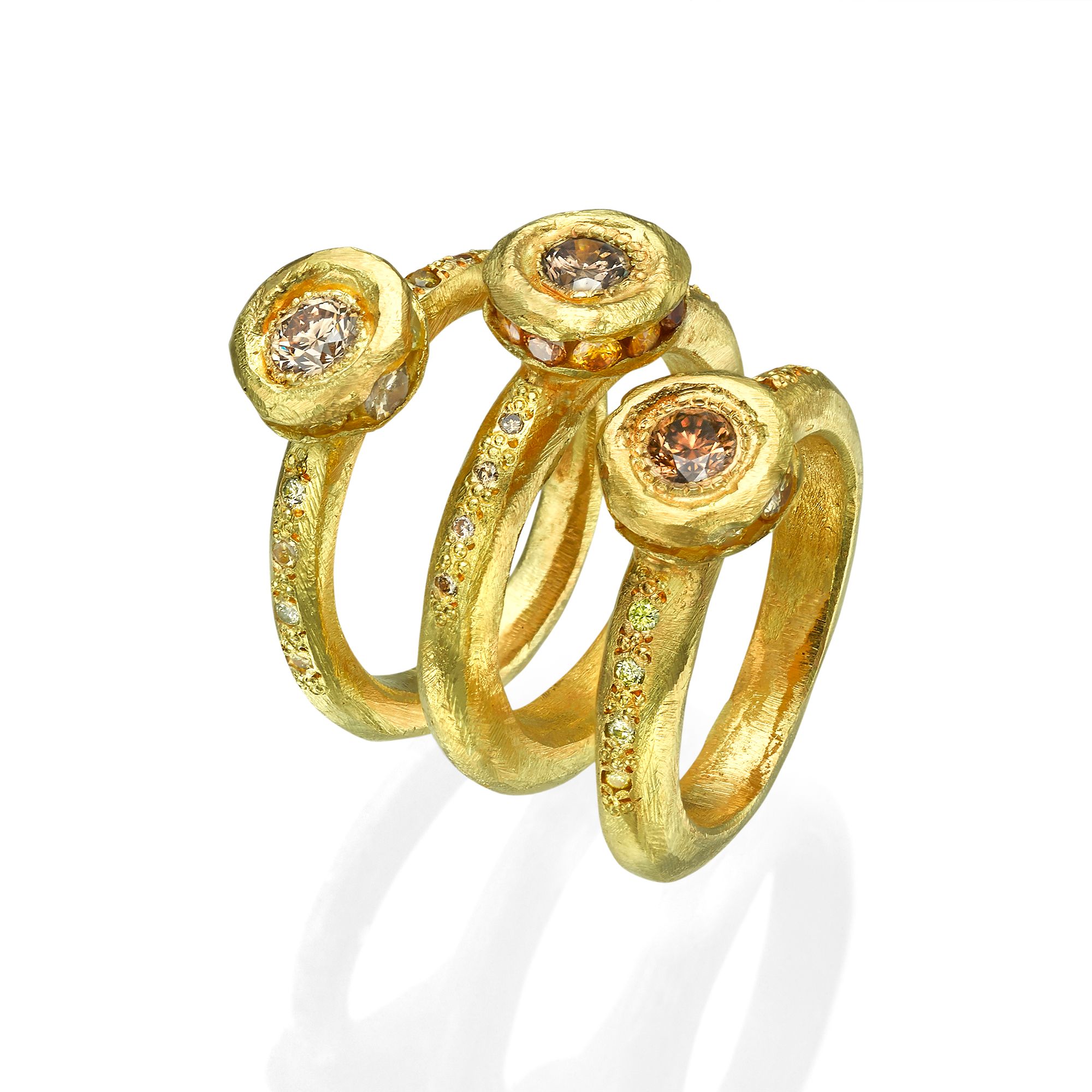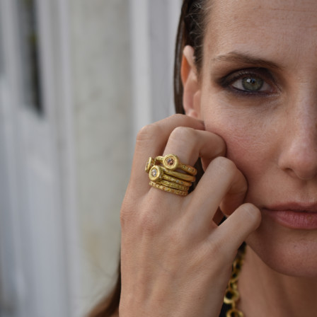 18k Gold textured ring with a champagne diamond