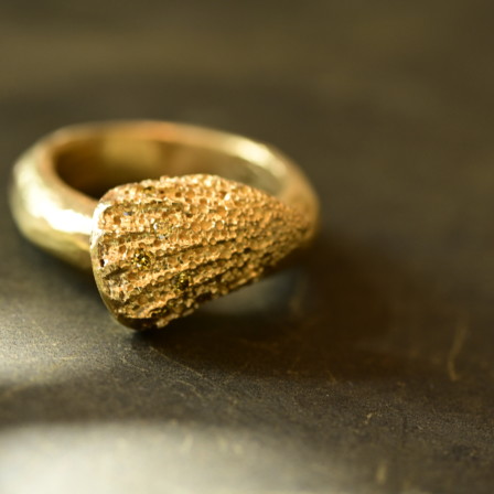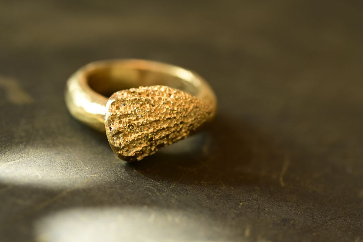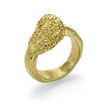 Wide 18K gold ring with conch