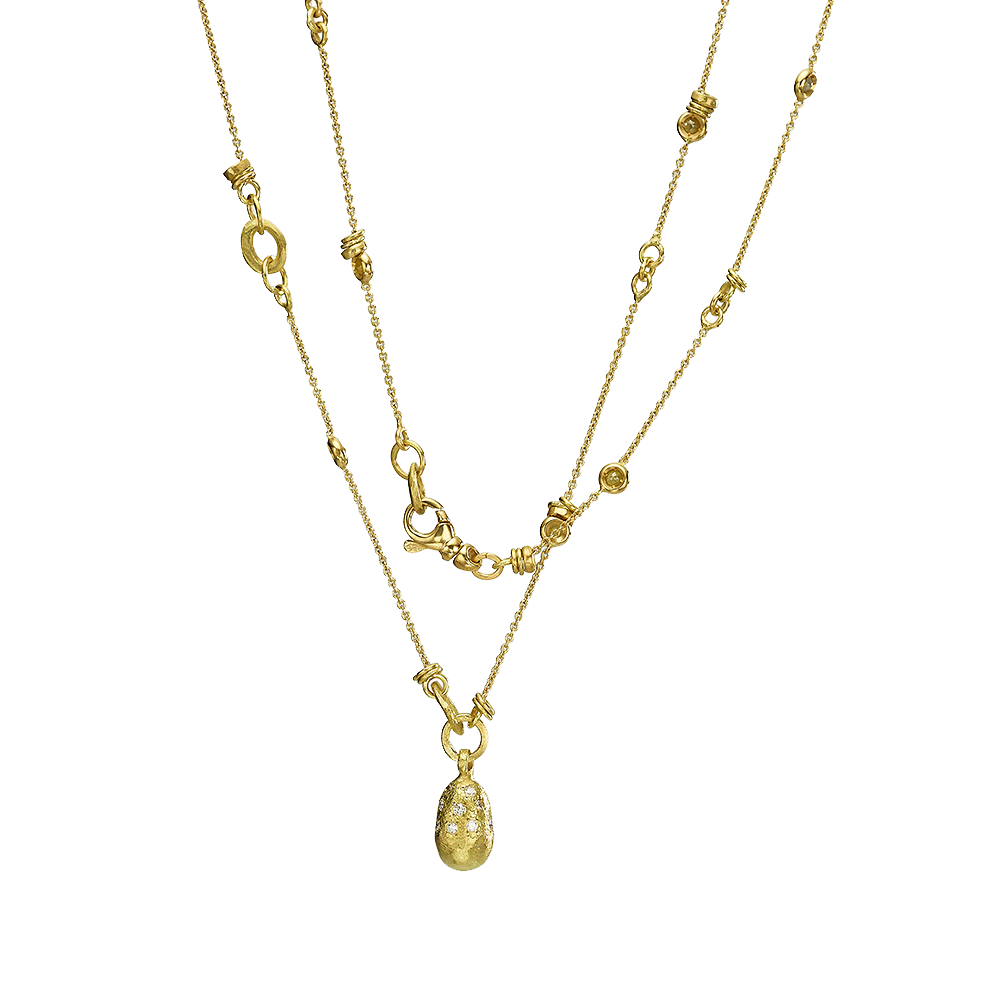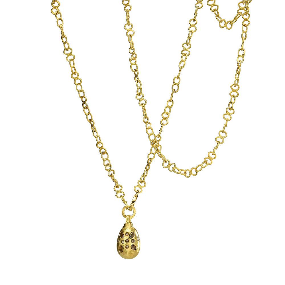 18K Gold segment necklace and oval pendant
