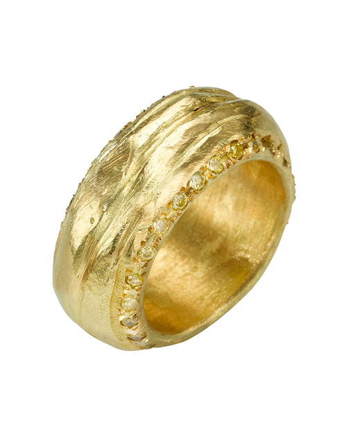 18k Gold broad textured ring