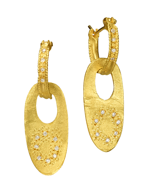 18k Gold hoop earrings with an oval plate