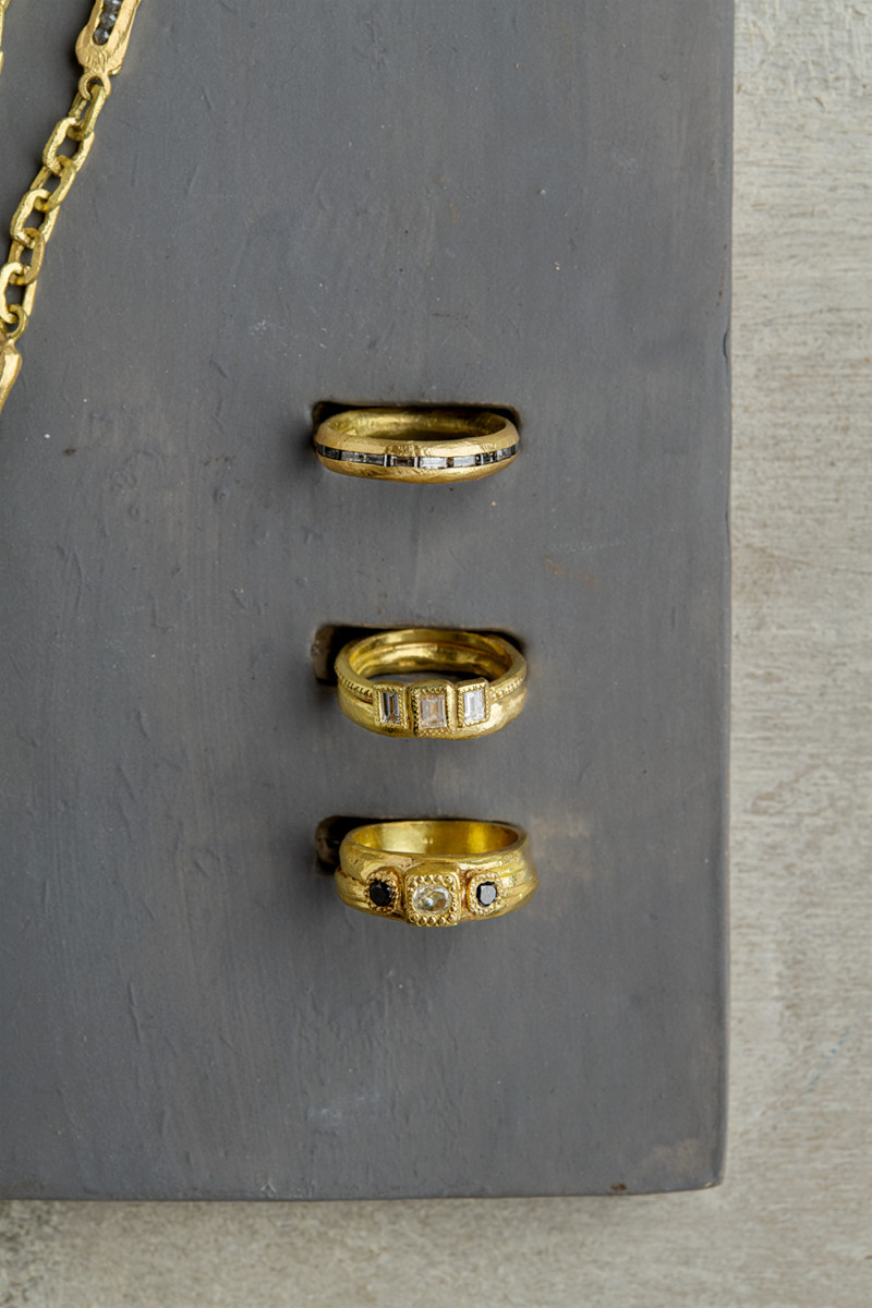כמות של טבעת זהב 18 קראט בטקסטורה לא אחידה