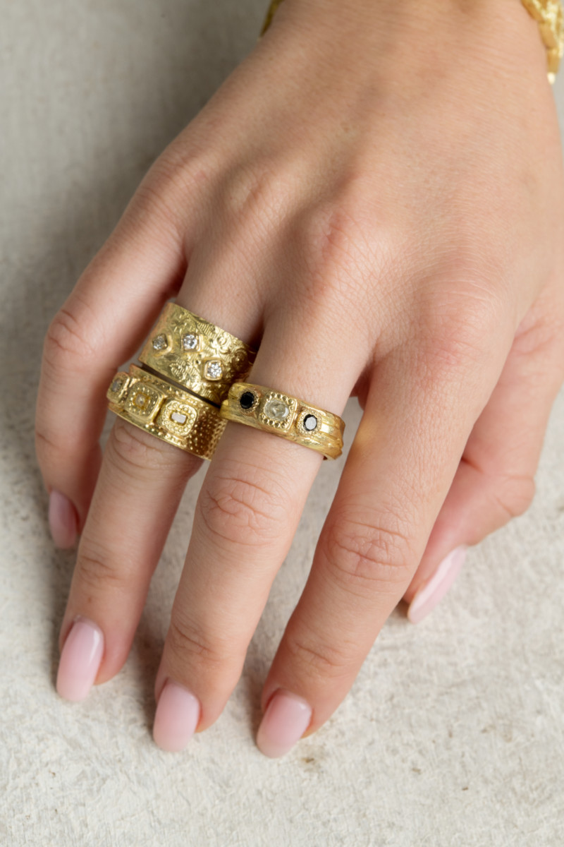 כמות של טבעת זהב 18 קראט בטקסטורת פרחים