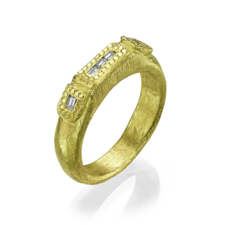 טבעת זהב 18 קראט בשיבוץ יהלומי באגט