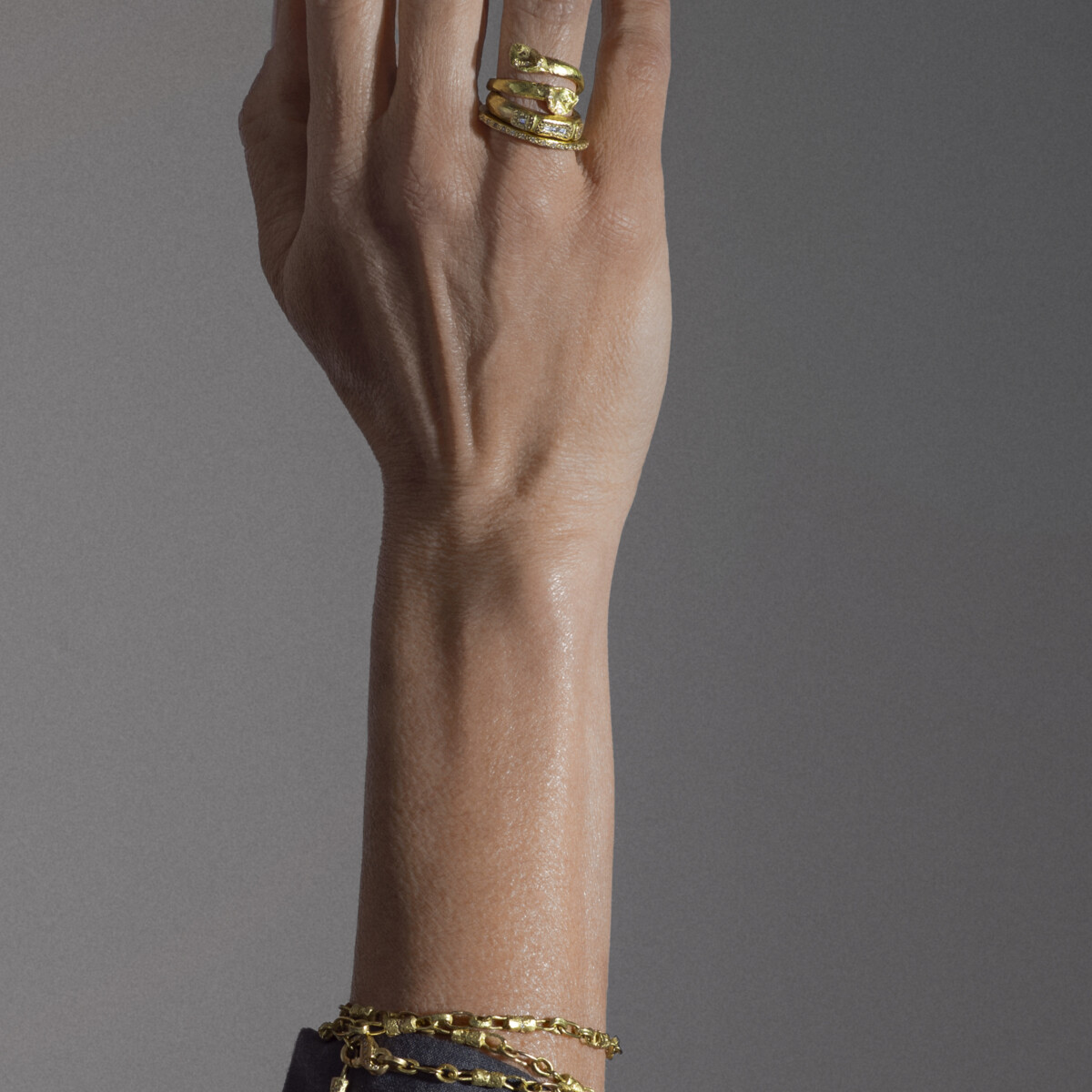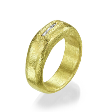 טבעת זהב 18 קראט בשיבוץ יהלומי באגט