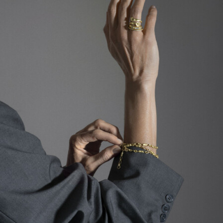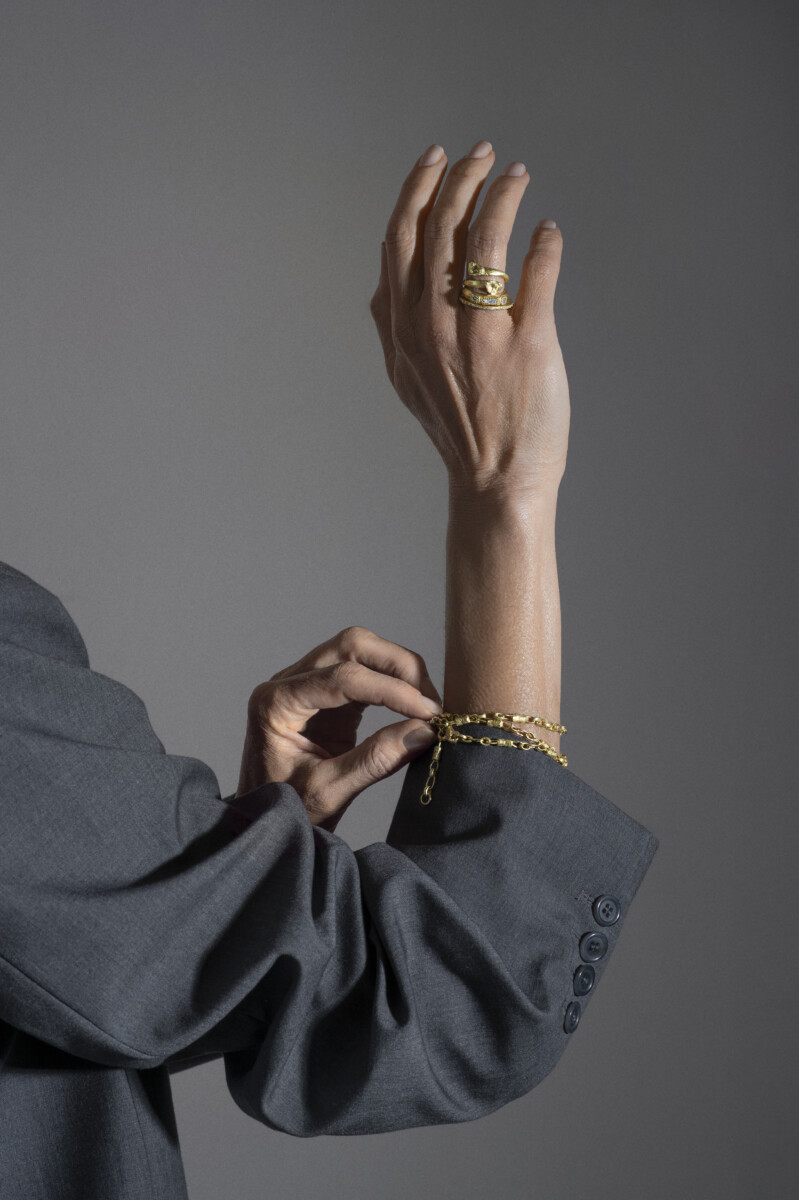 כמות של טבעת זהב 18 קראט בשיבוץ יהלומי באגט