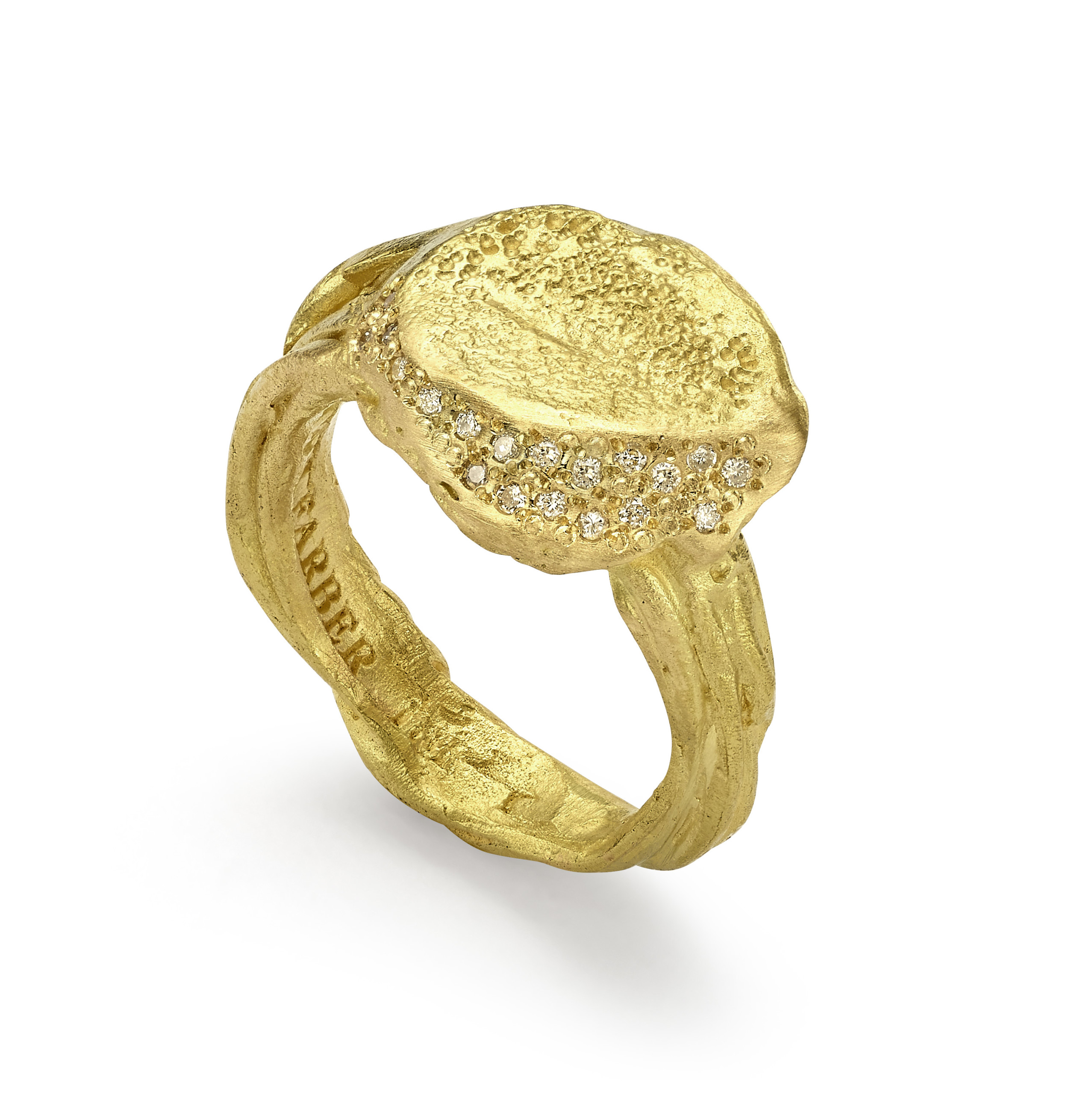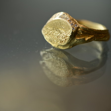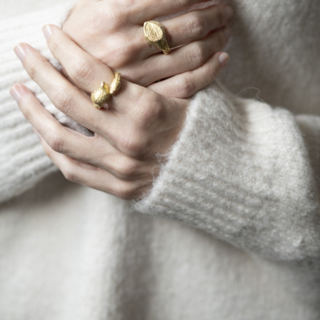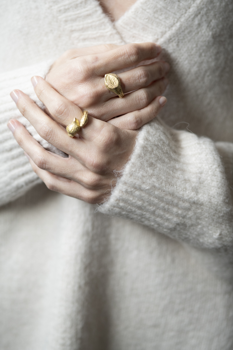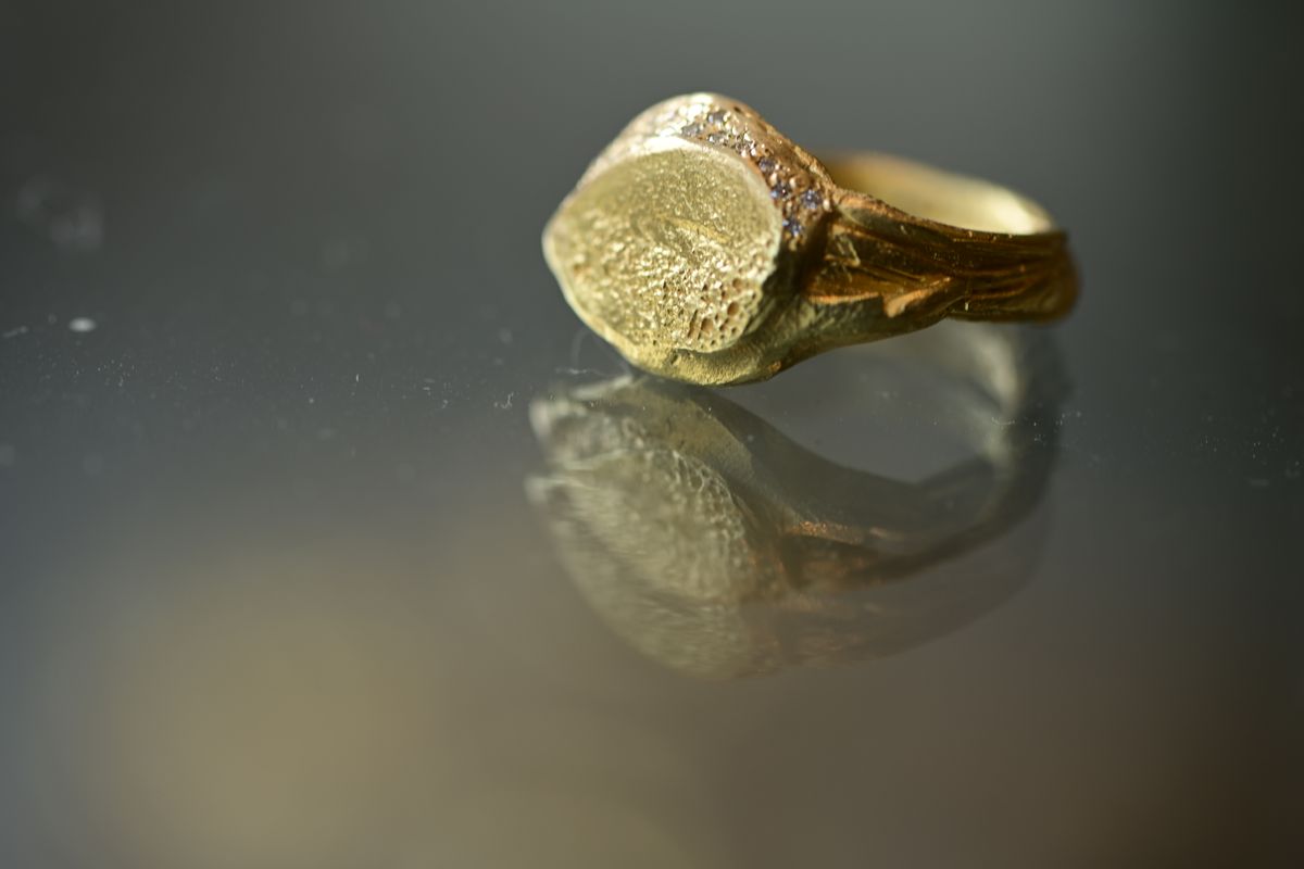 טבעת זהב 18 קראט מלופפת עם צדף מחוספס