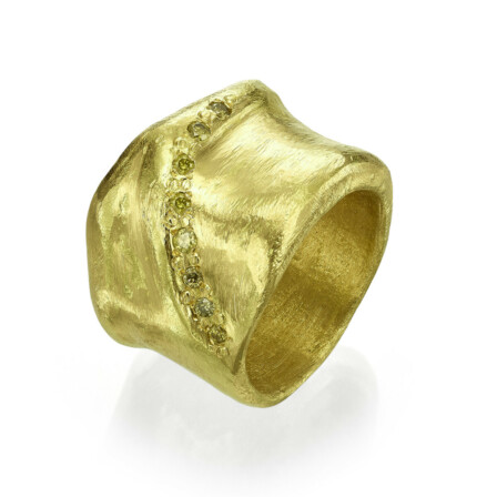כמות של טבעת זהב 18 קראט רחבה בטקסטורה לא אחידה