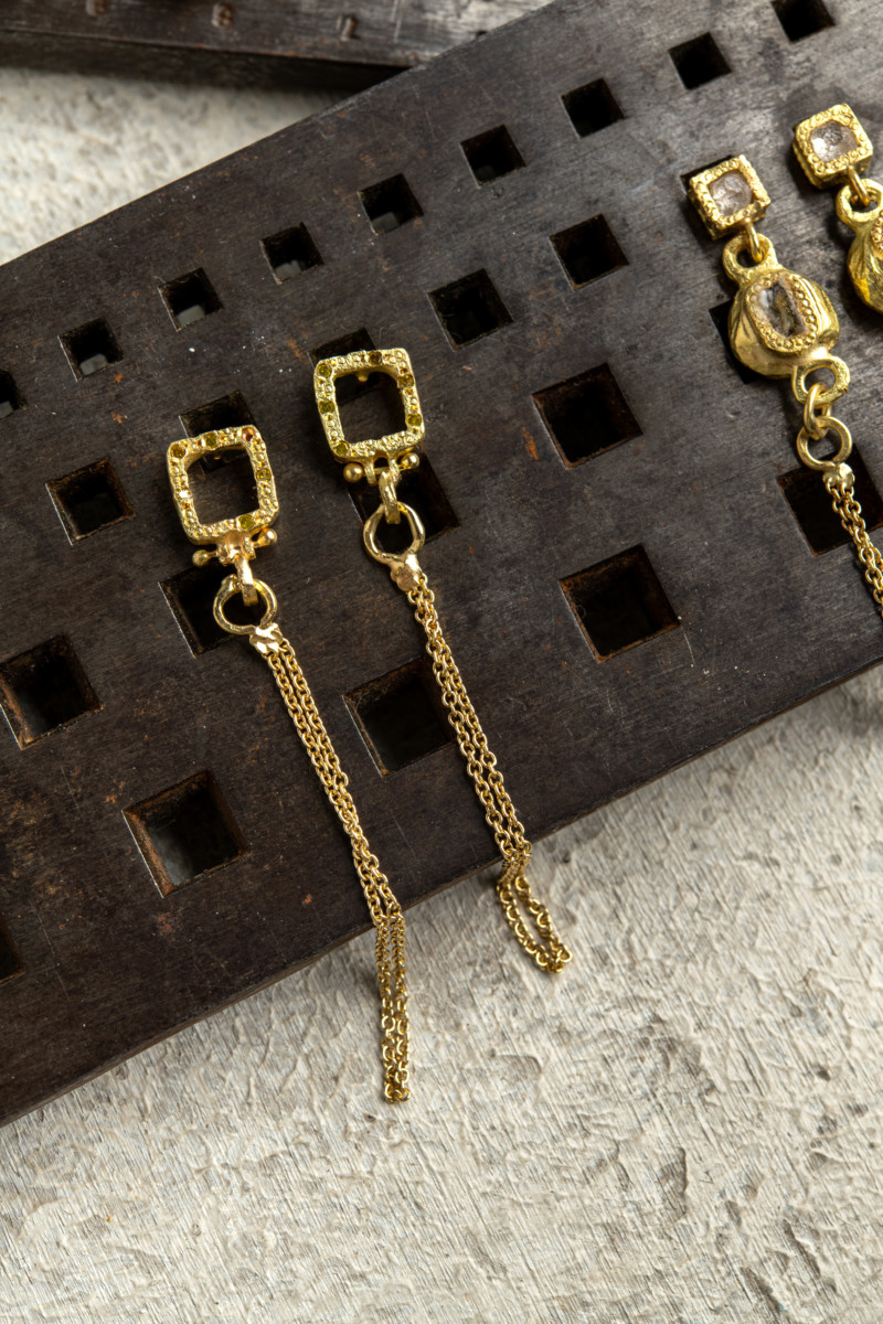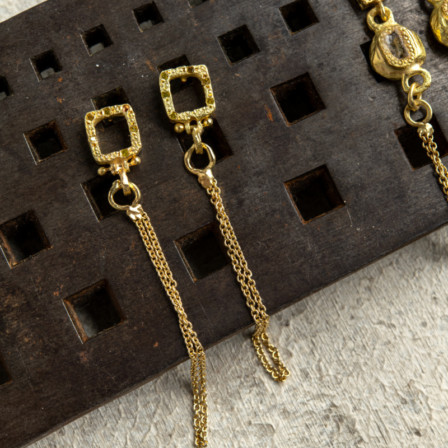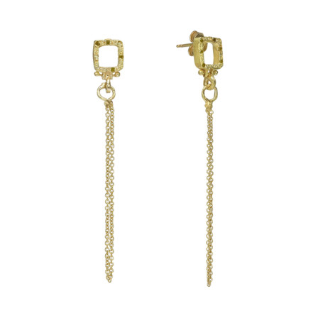 עגילים צמודים מרובעים זהב 18 קראט עם גדילים