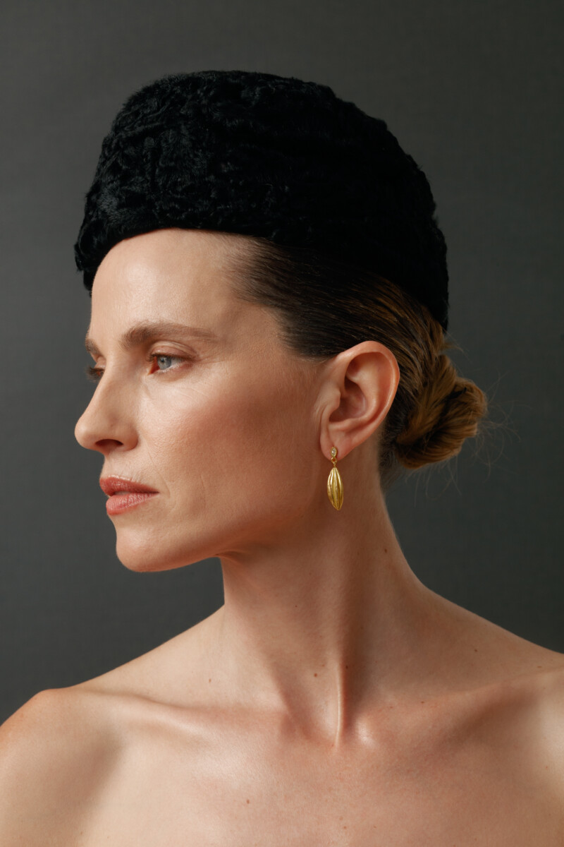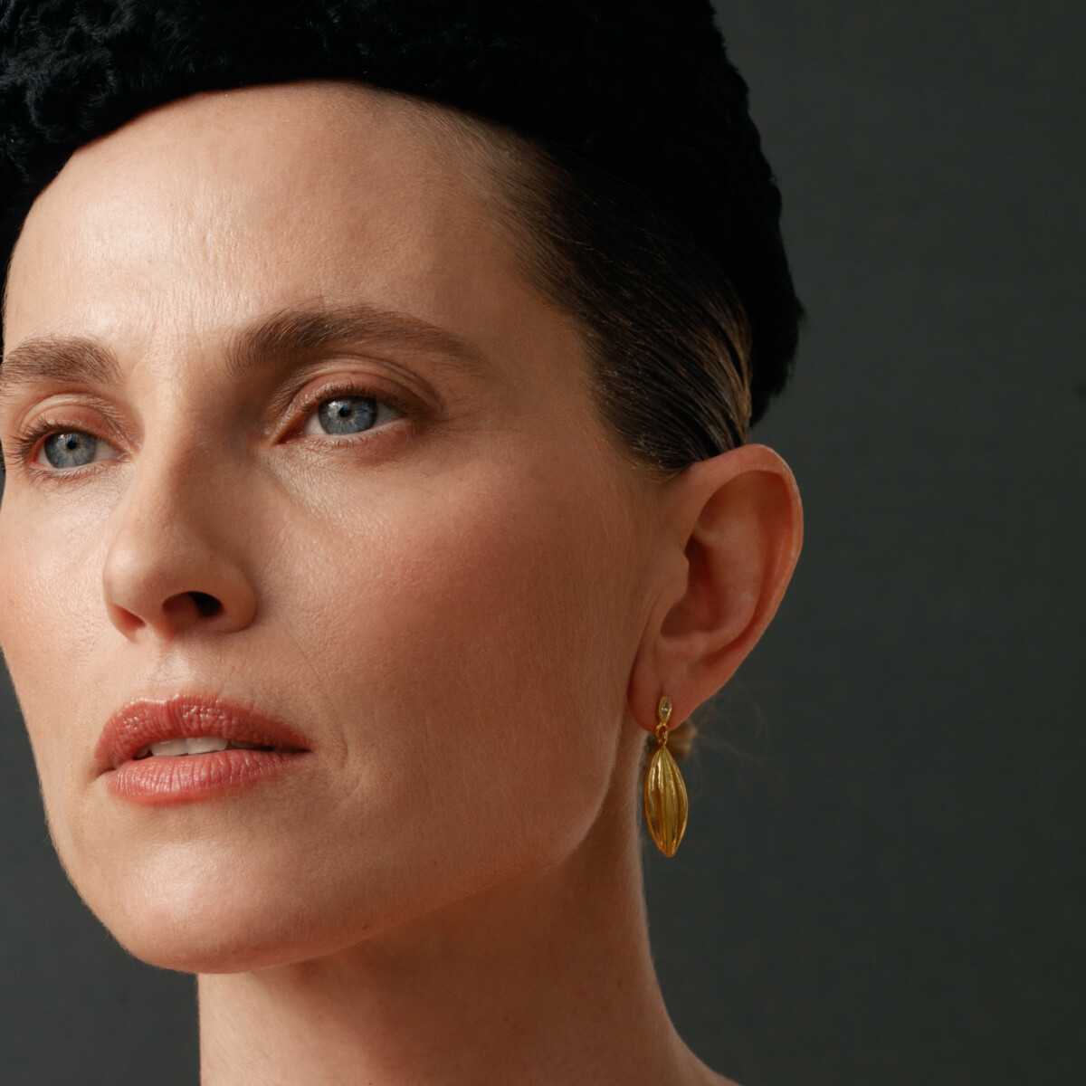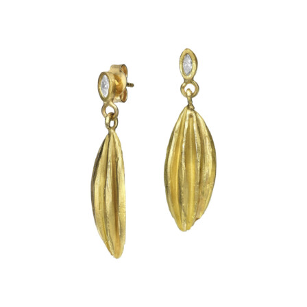 עגילי זהב צמודים 18 קראט עם עלה מחורץ