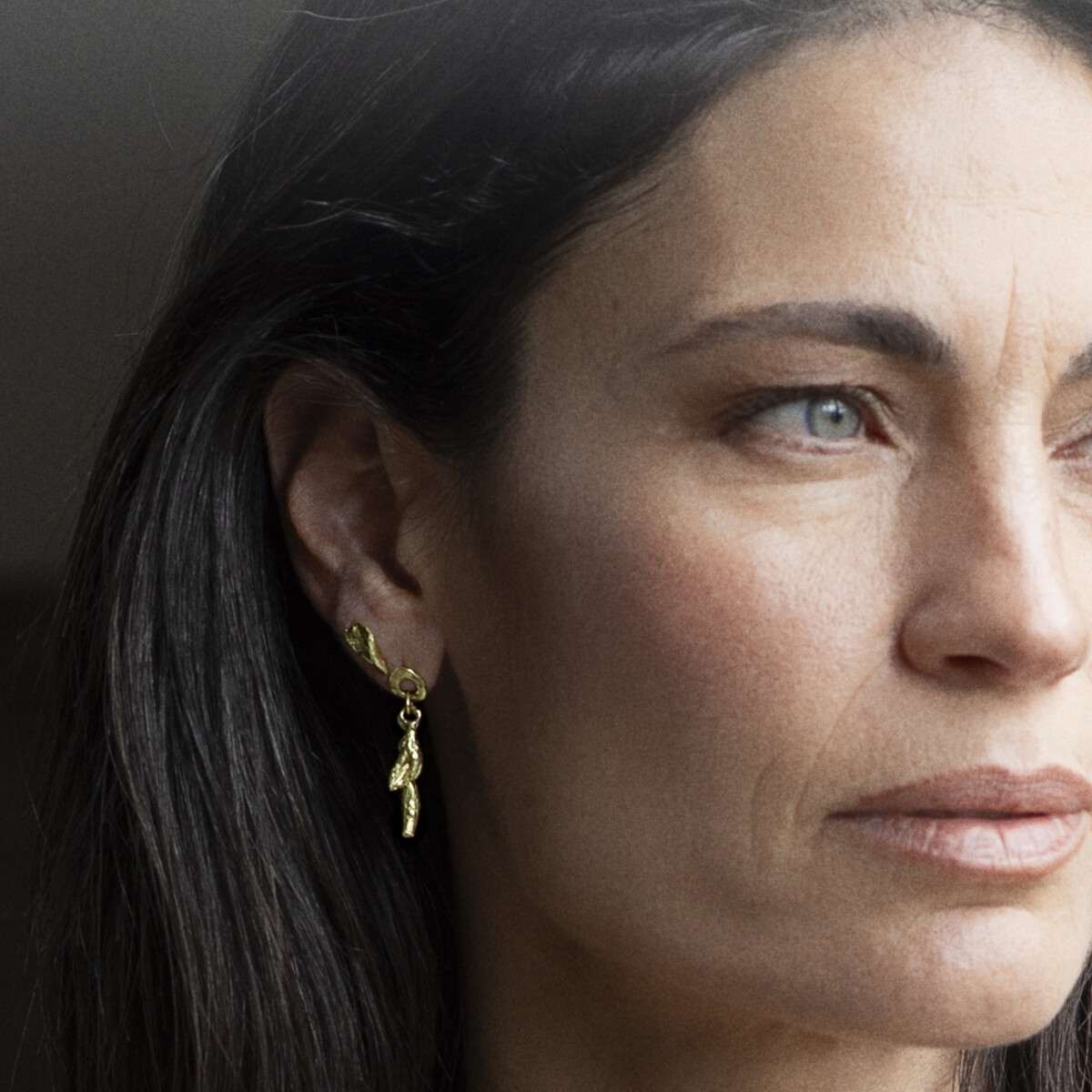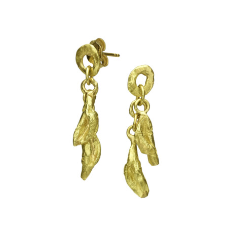 עגילי חוליות זהב צמודים 18 קראט עם תליוני עלים