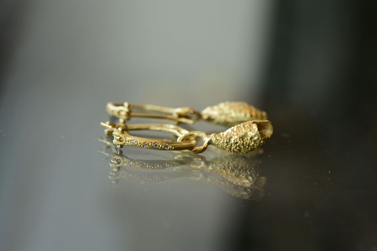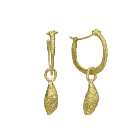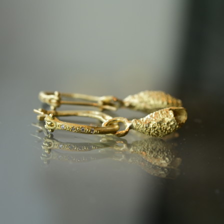 עגילי חישוק דקים גדולים זהב 18 קראט עם תליון קונכיה קטנה