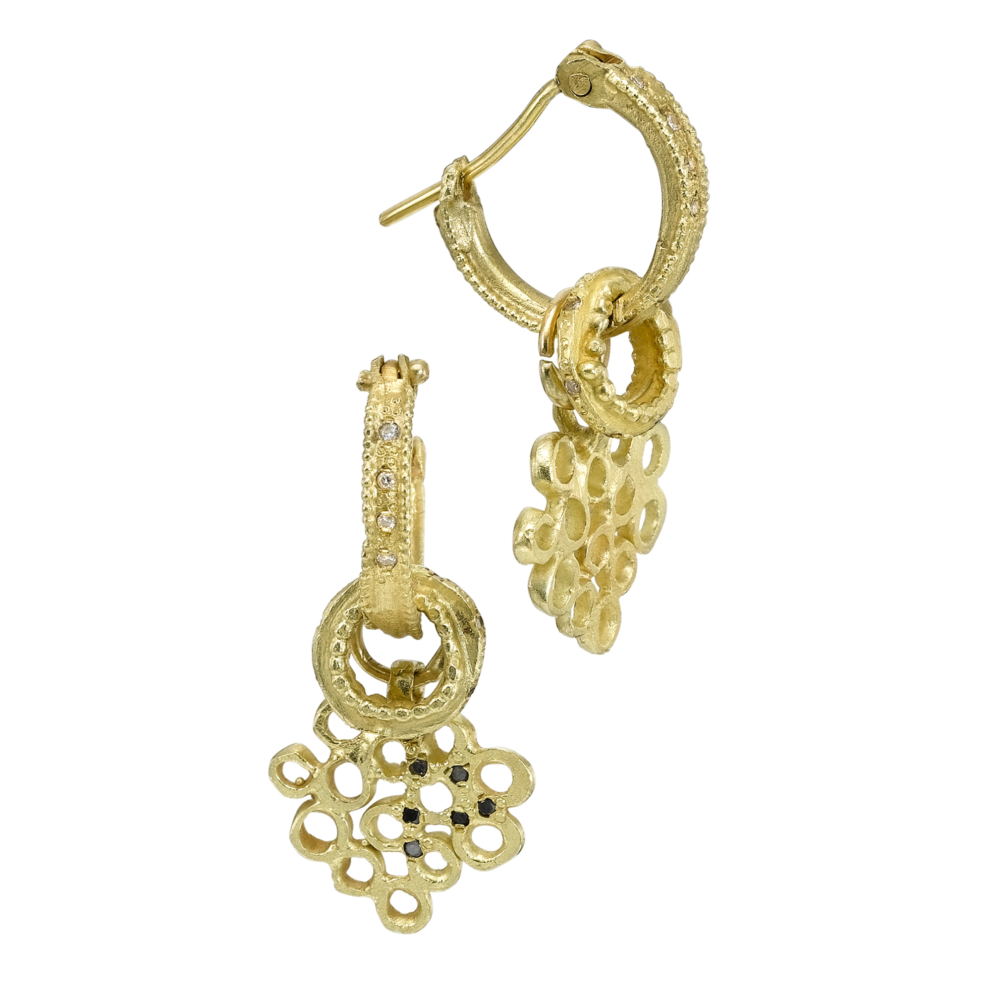 עגילי חישוק זהב 18 קראט עם תליון חוליות