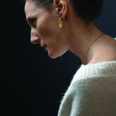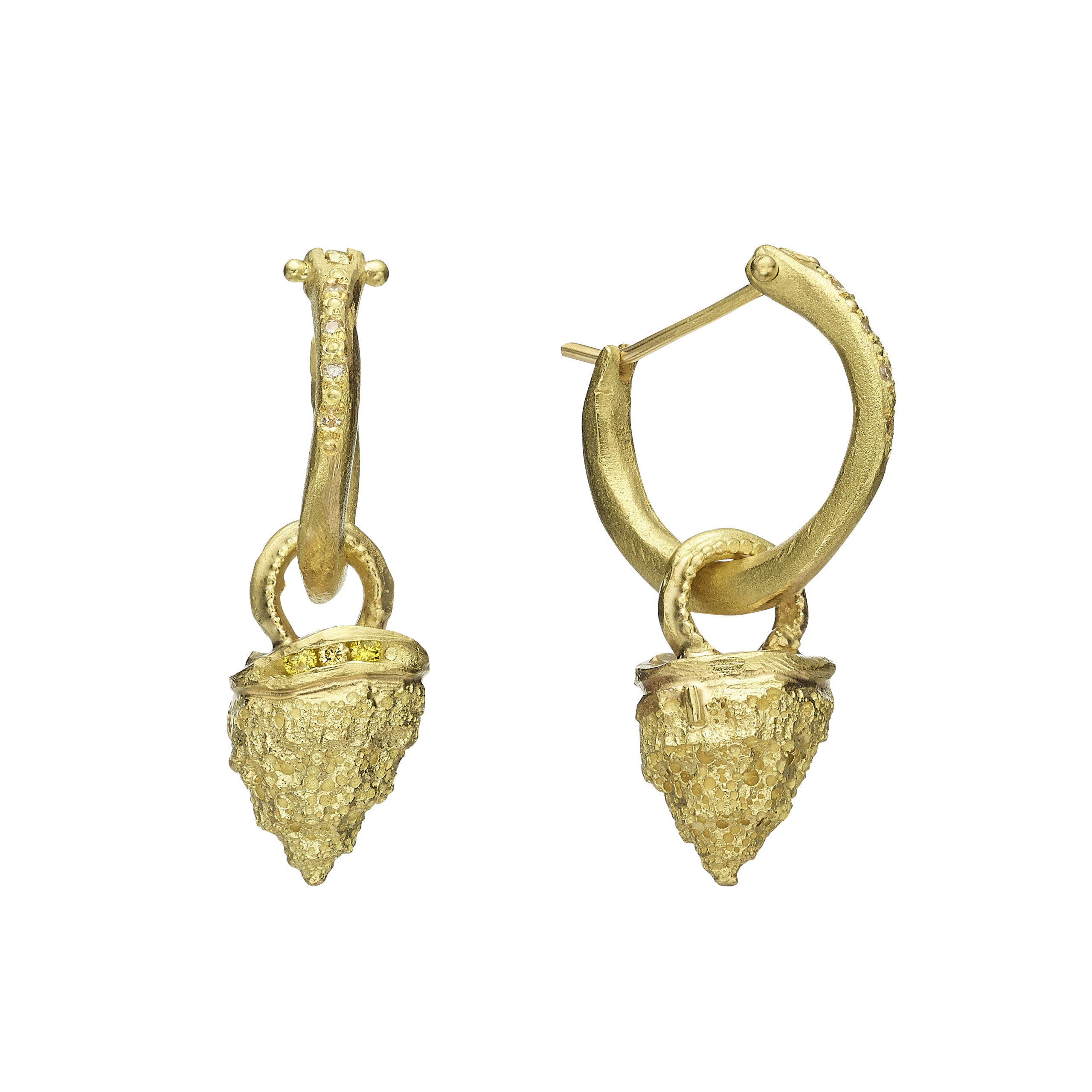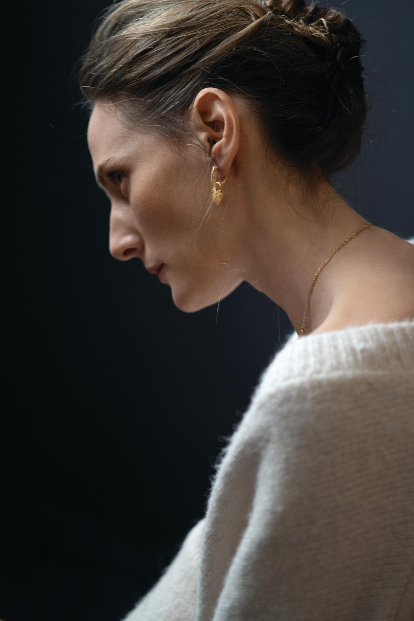 עגילי חישוק חלקים גדולים זהב 18 קראט עם תליון קונכיה גדולה