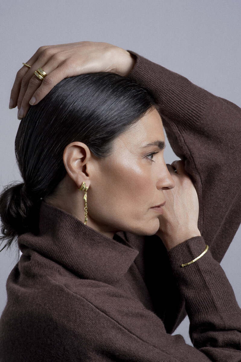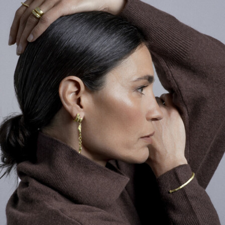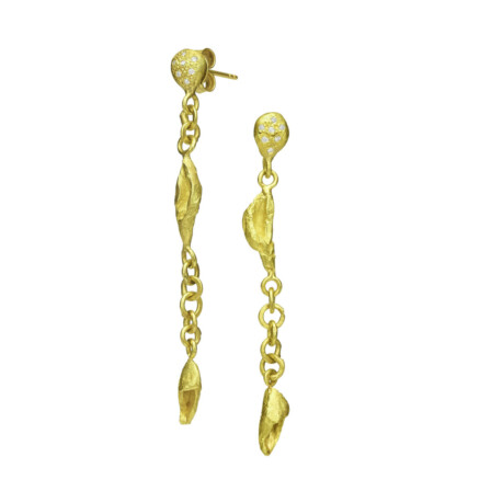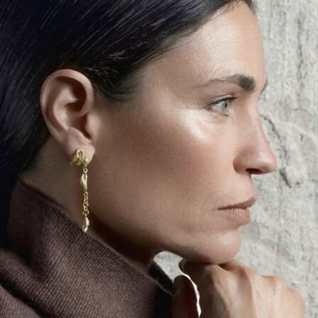 כמות של עגילי כדורי זהב צמודים 18 קראט עם תליוני עלים