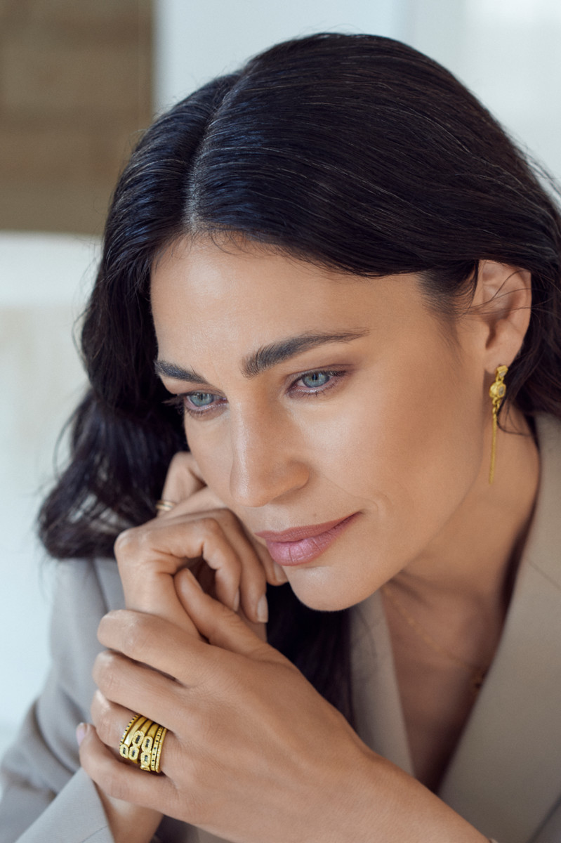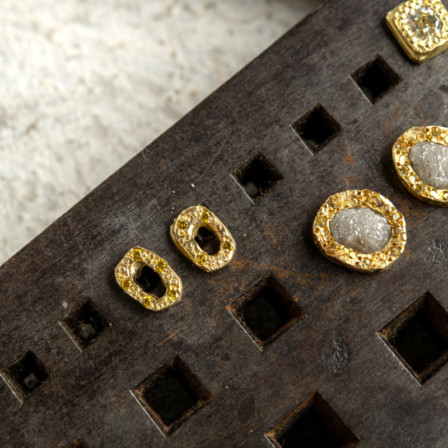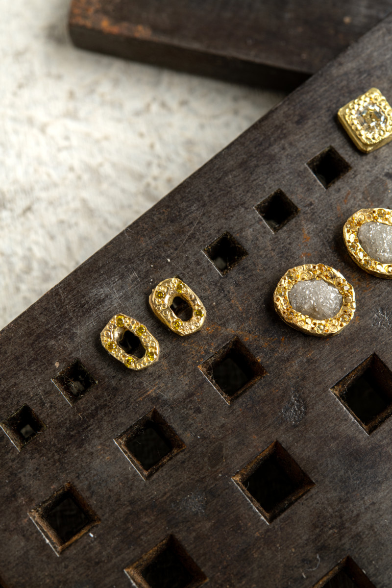כמות של עגילי מרובעי זהב צמודים 18 קראט
