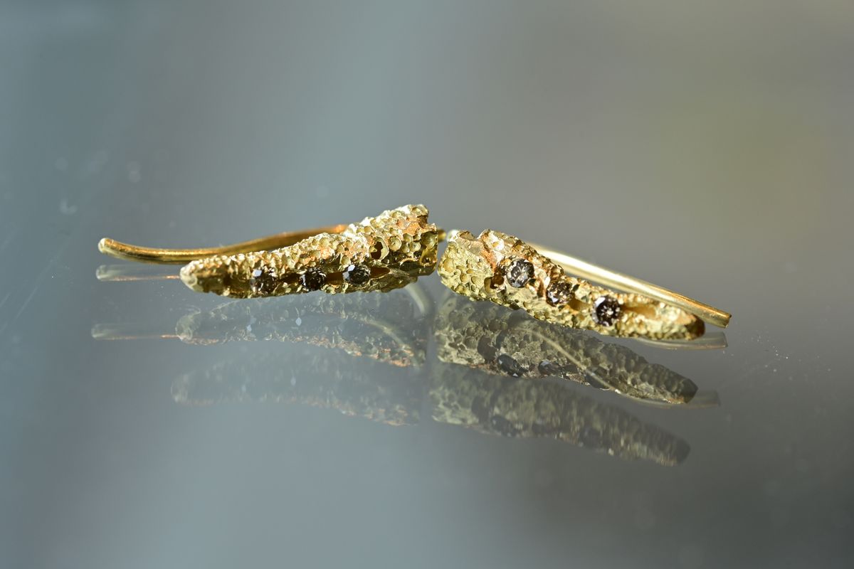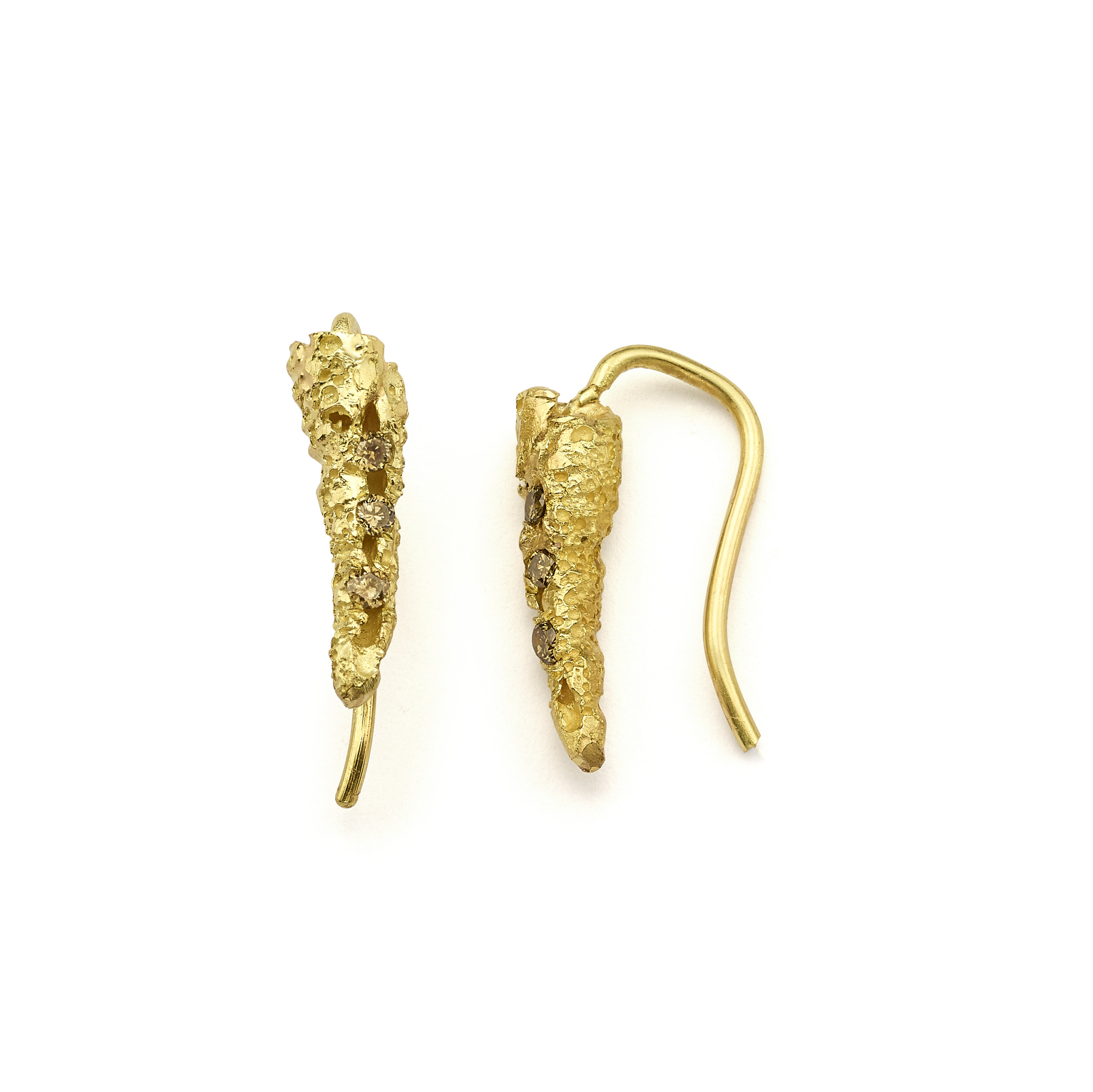 עגילי קונכיות זהב 18 קראט תלויים דקים