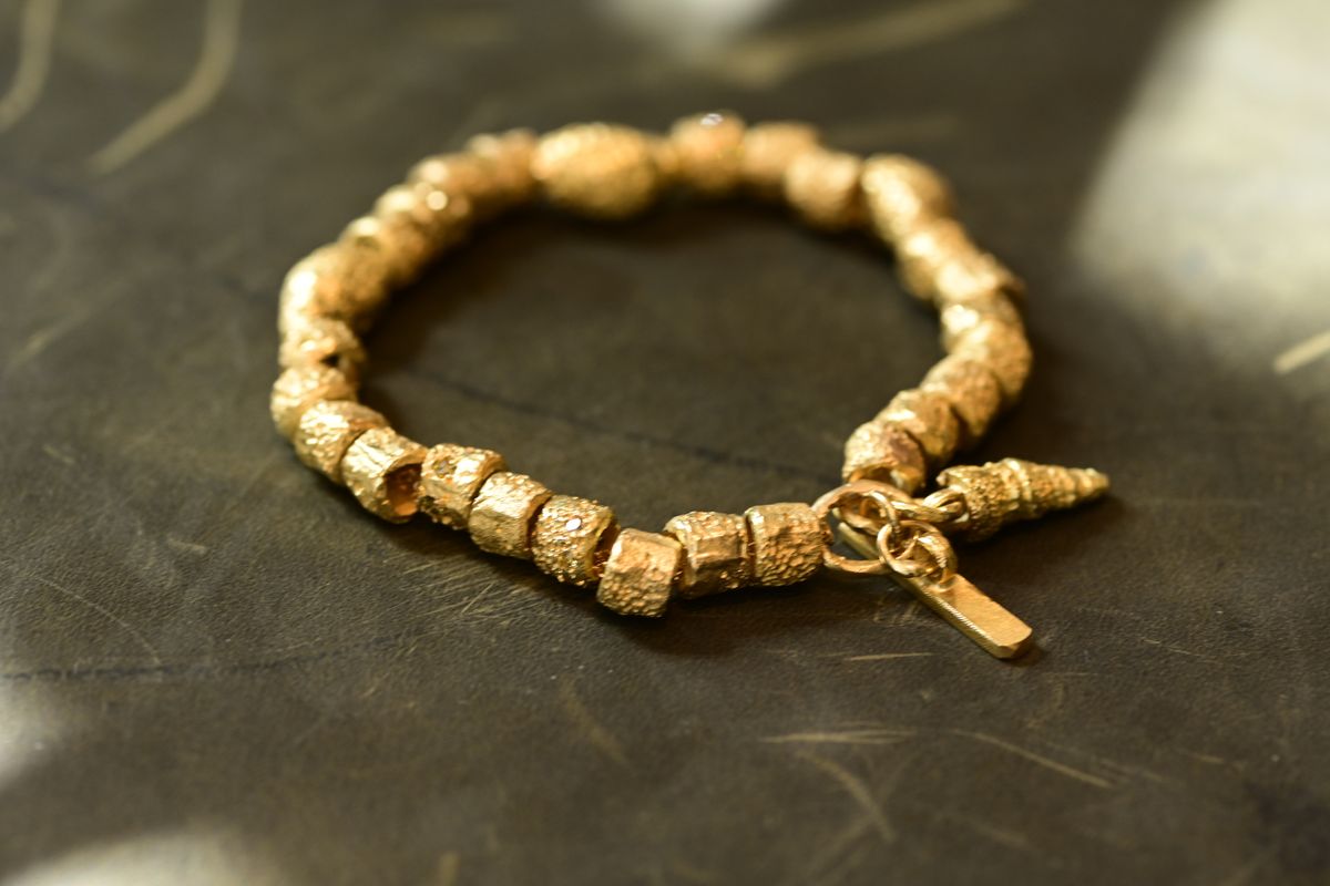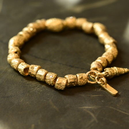 צמיד חוליות מחוספסות זהב 18 קראט עם תליון קונכיה