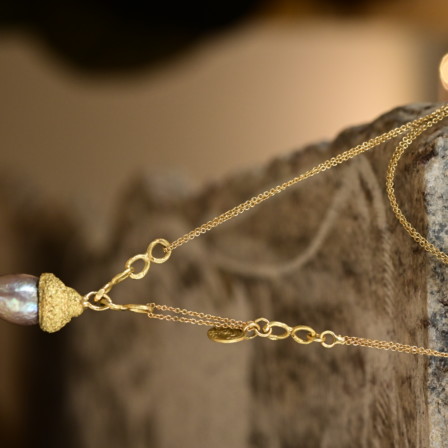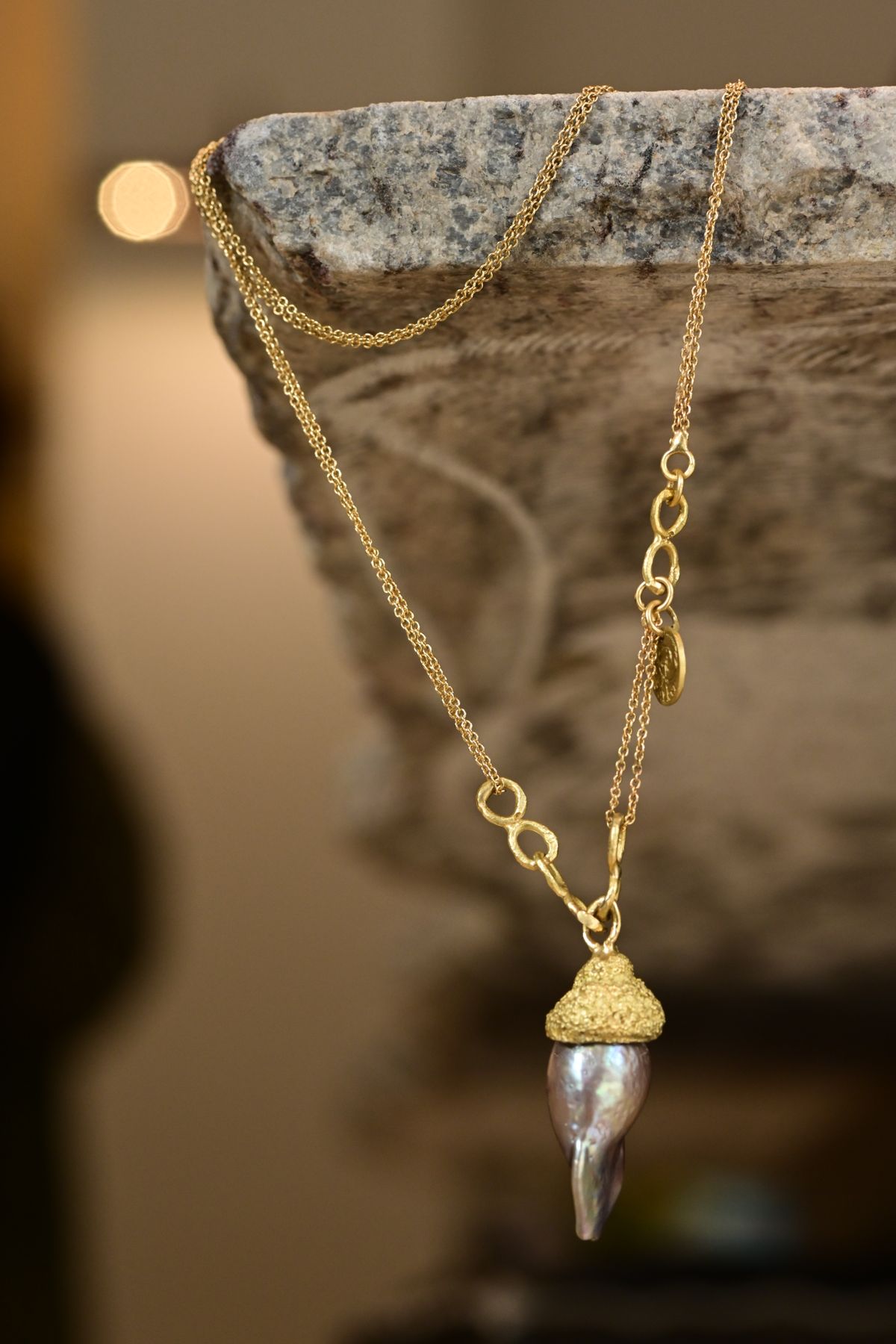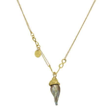 שרשרת זהב 18 קראט עם תליון קונכיה ופנינה