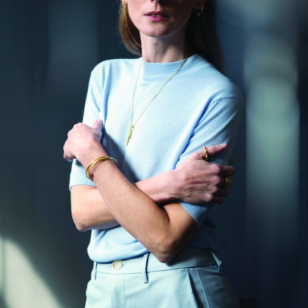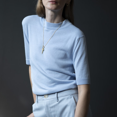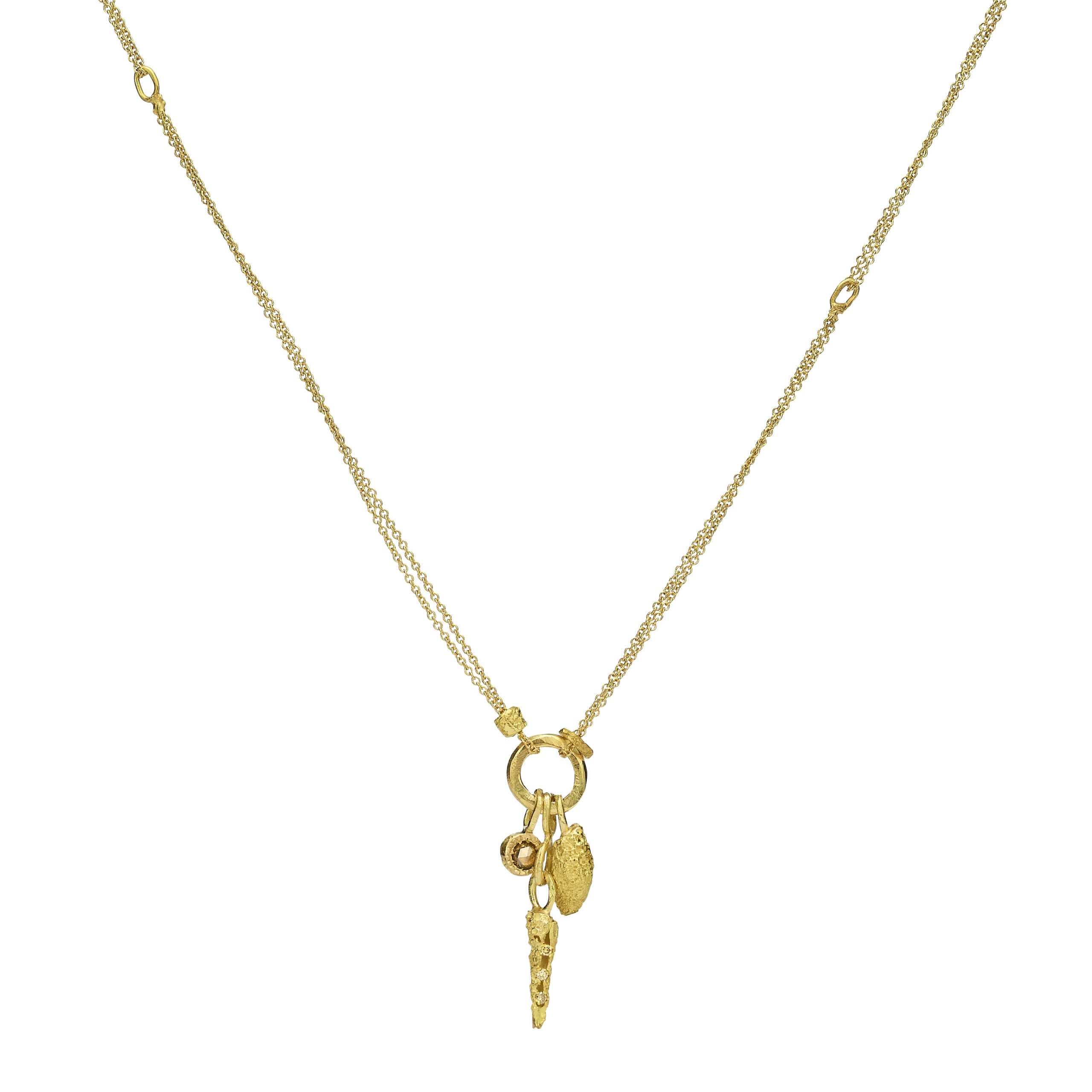 שרשרת זהב 18 קראט עם תליון קונכיות ויהלום שמפניה