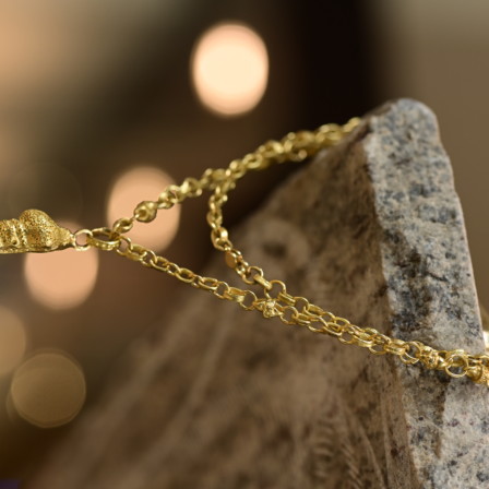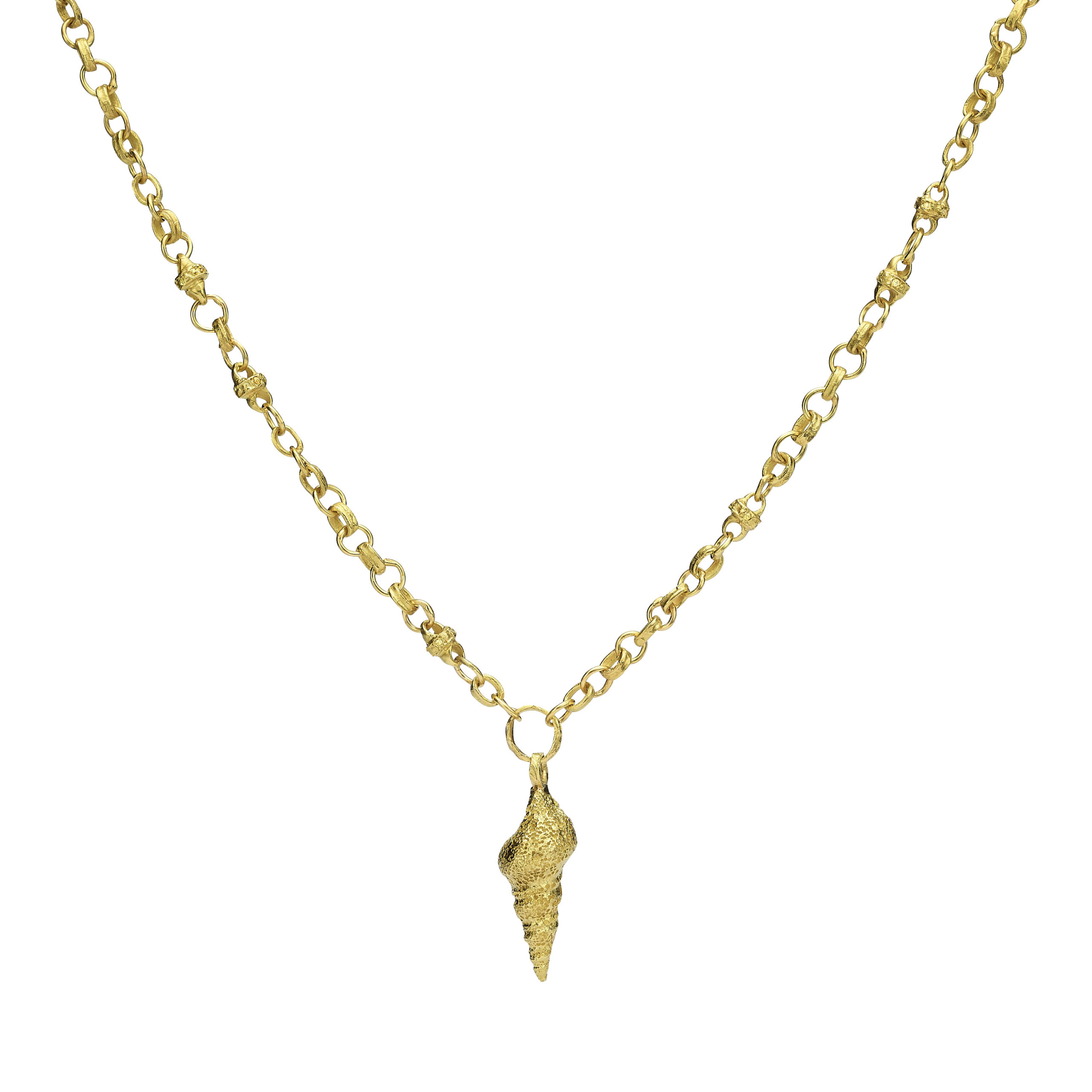 שרשרת חוליות זהב מחוברות 18 קראט עם תליון קונכיה מאורכת