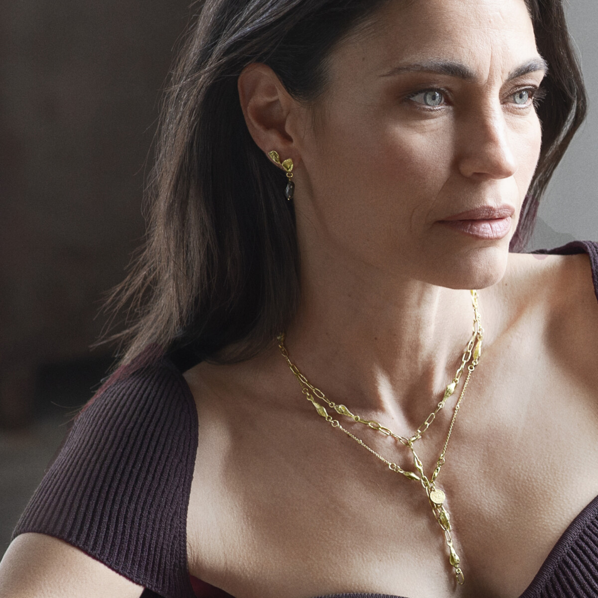 שרשרת עלי זהב 18 קראט וחוליות מלבניות