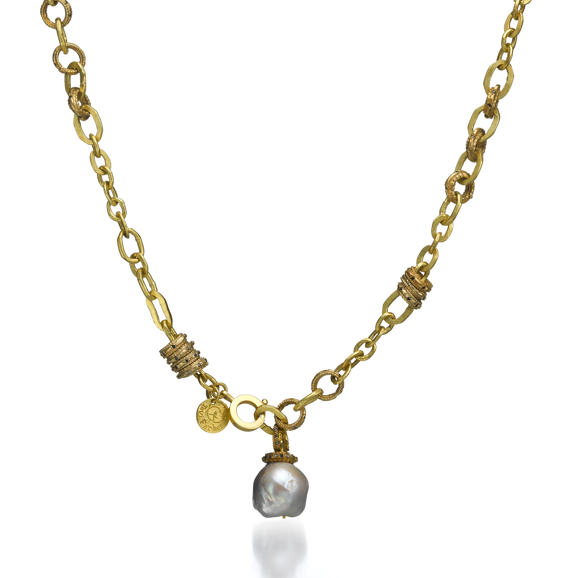 שרשרת זהב צהוב ולבן 18 קראט עם תליון פנינה