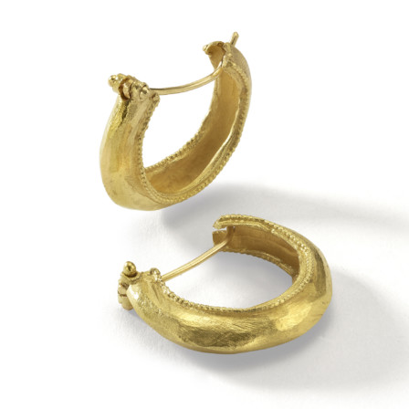 עגילי חישוק זהב 18 קראט עם חריטת לוגו