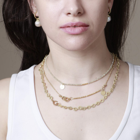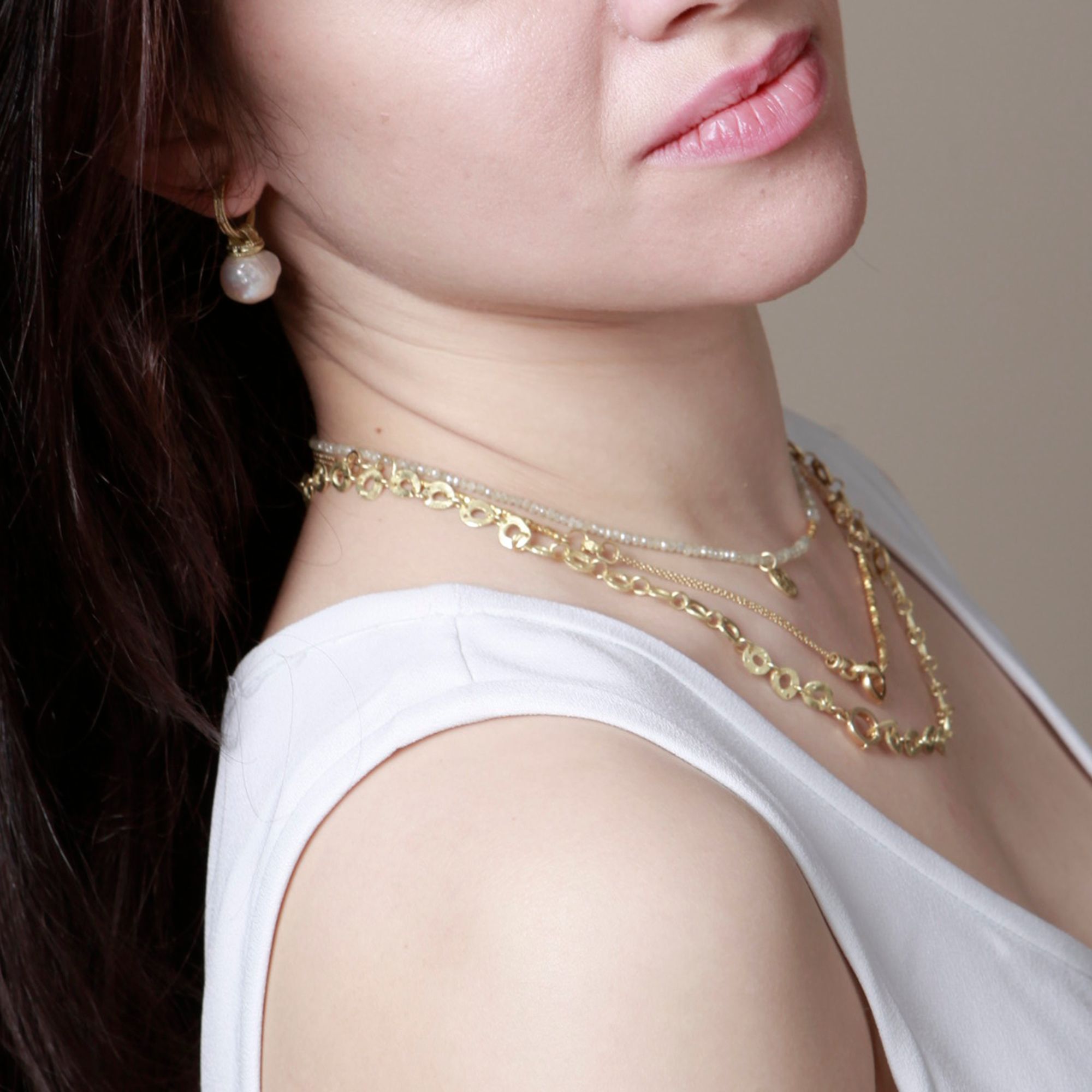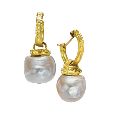 עגילי חישוק זהב 18 קראט עם תליון פנינה