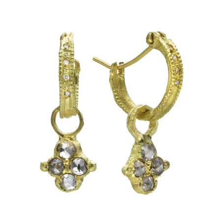 עגילי חישוק זהב 18 קראט עם תליון תלתן