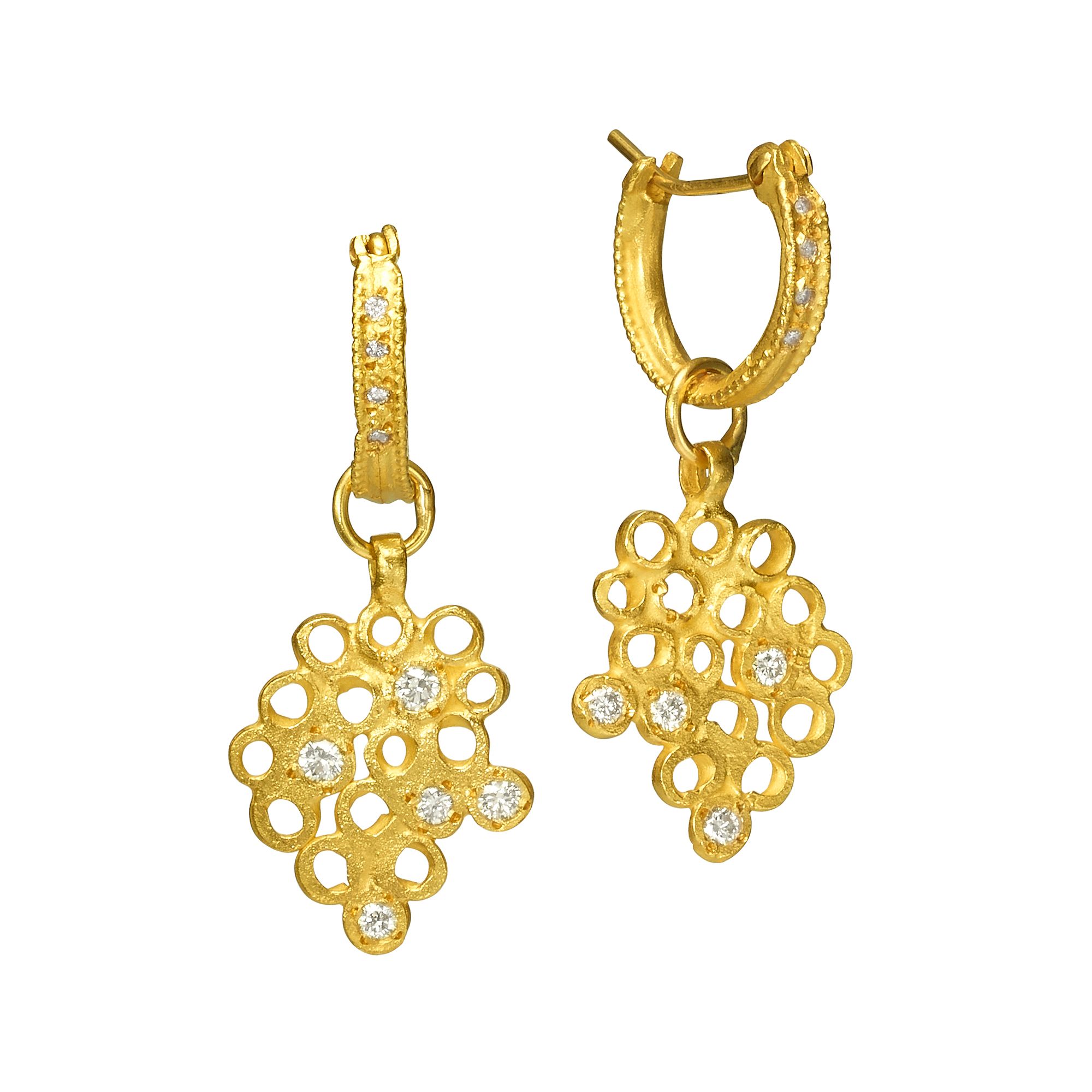 עגילי חישוק זהב 18 קראט עם תליון חוליות