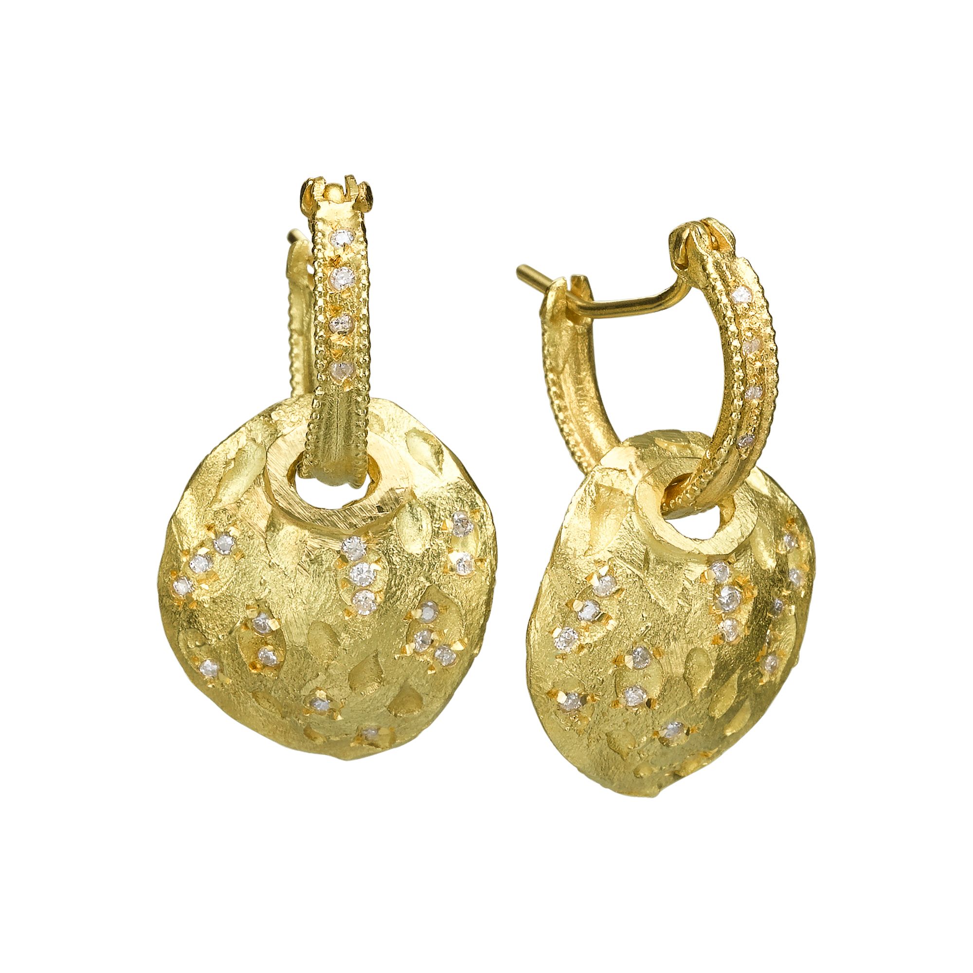 עגילי חישוק זהב 18 קראט עם תליון עלה