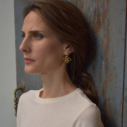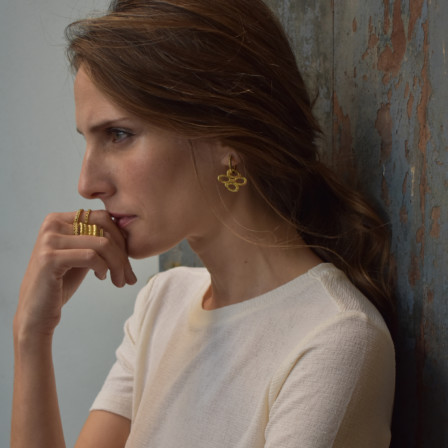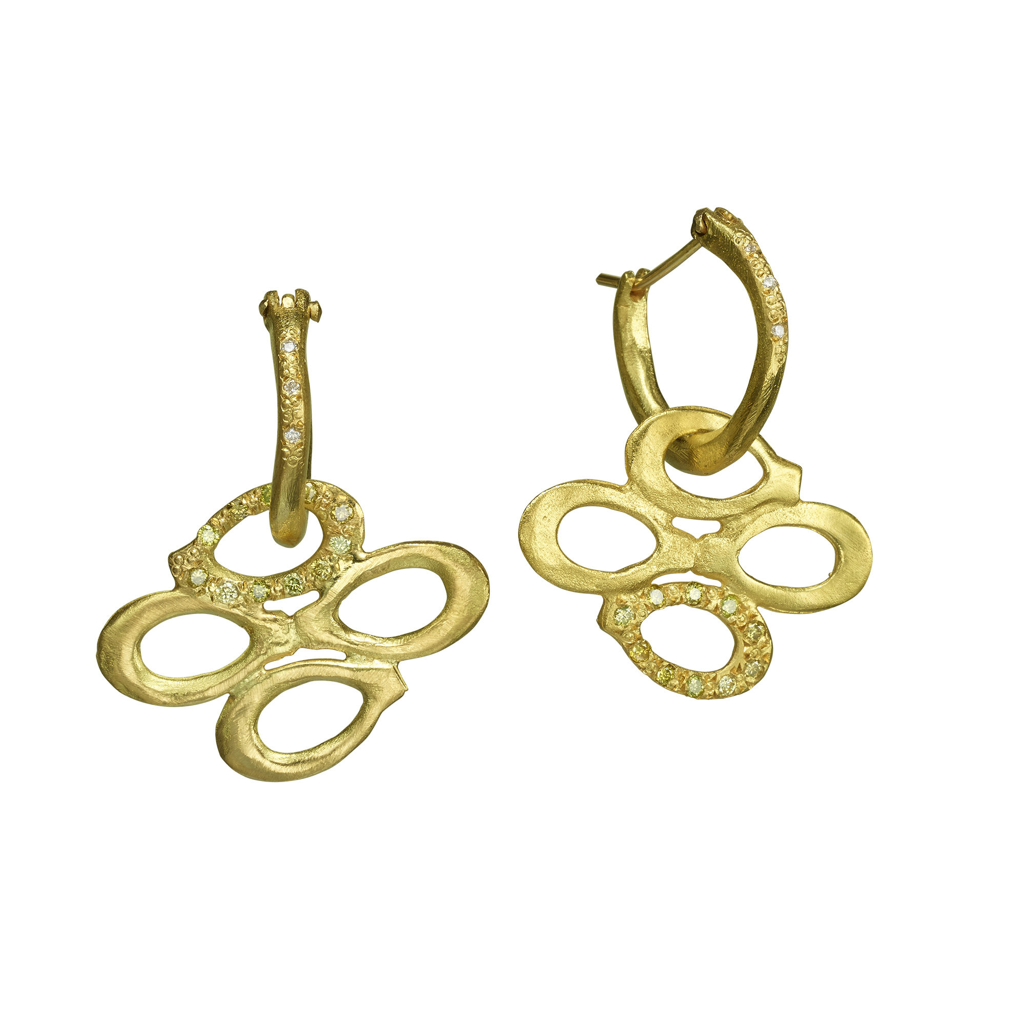 עגילי חישוק זהב 18 קראט עם תליון חוליות אובליות