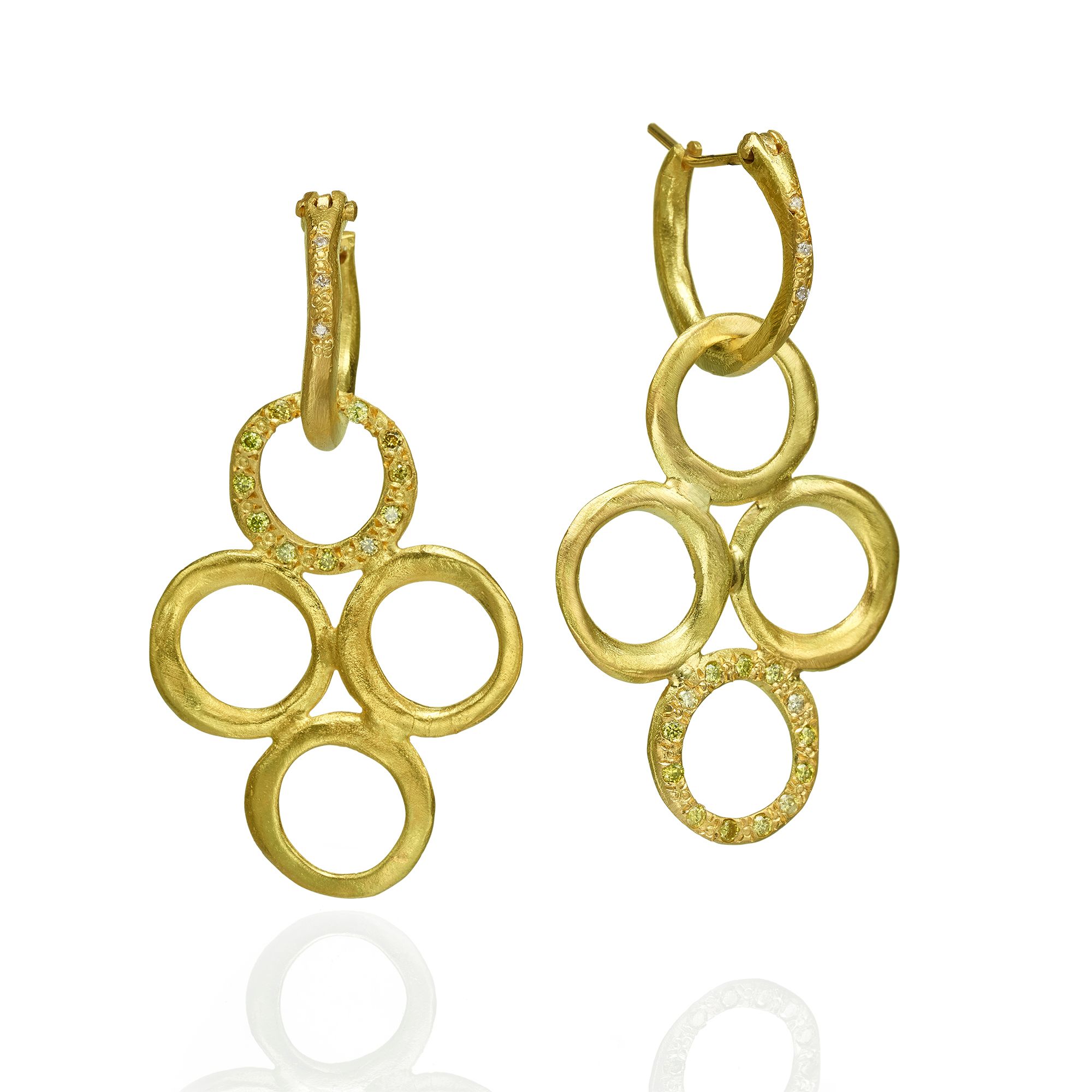 עגילי חישוק זהב 18 קראט עם תליון חוליות עגולות