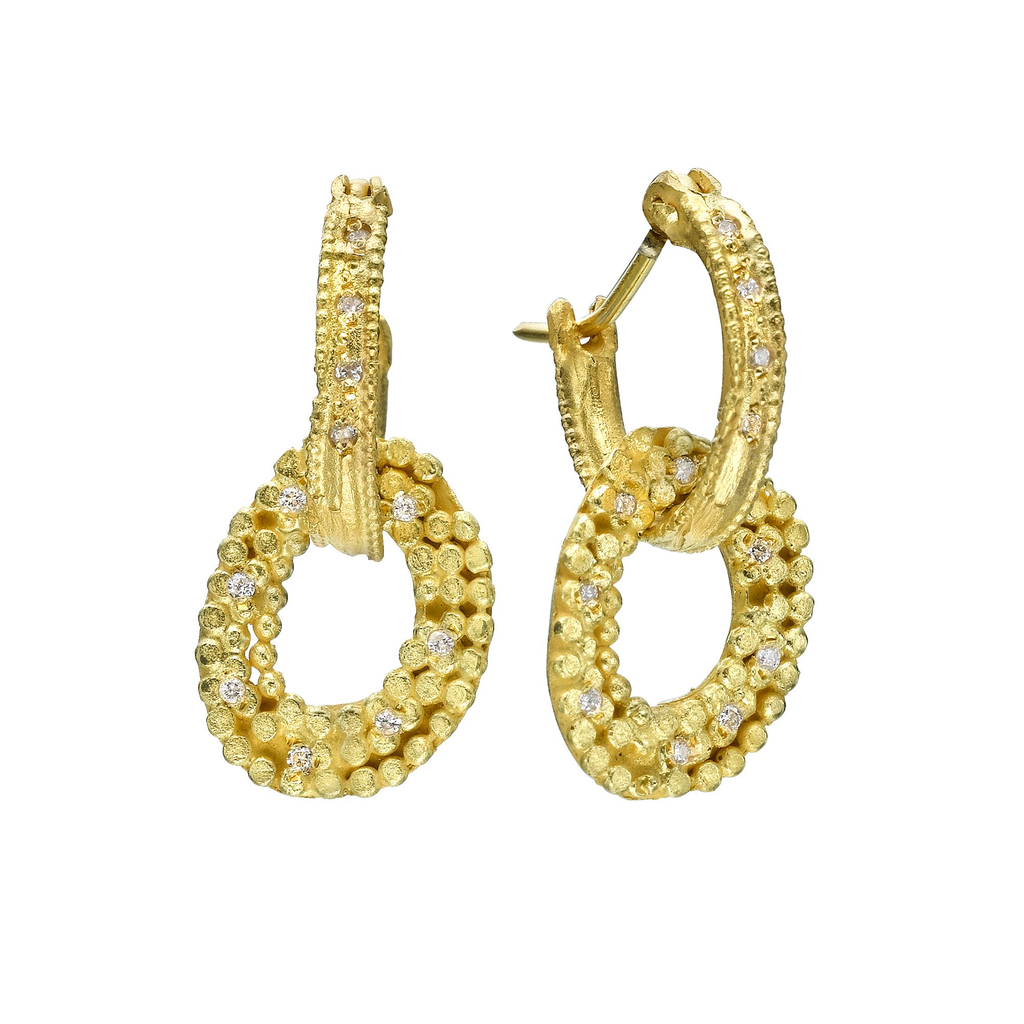 עגילי חישוק זהב 18 קראט עם תליון חלת דבש