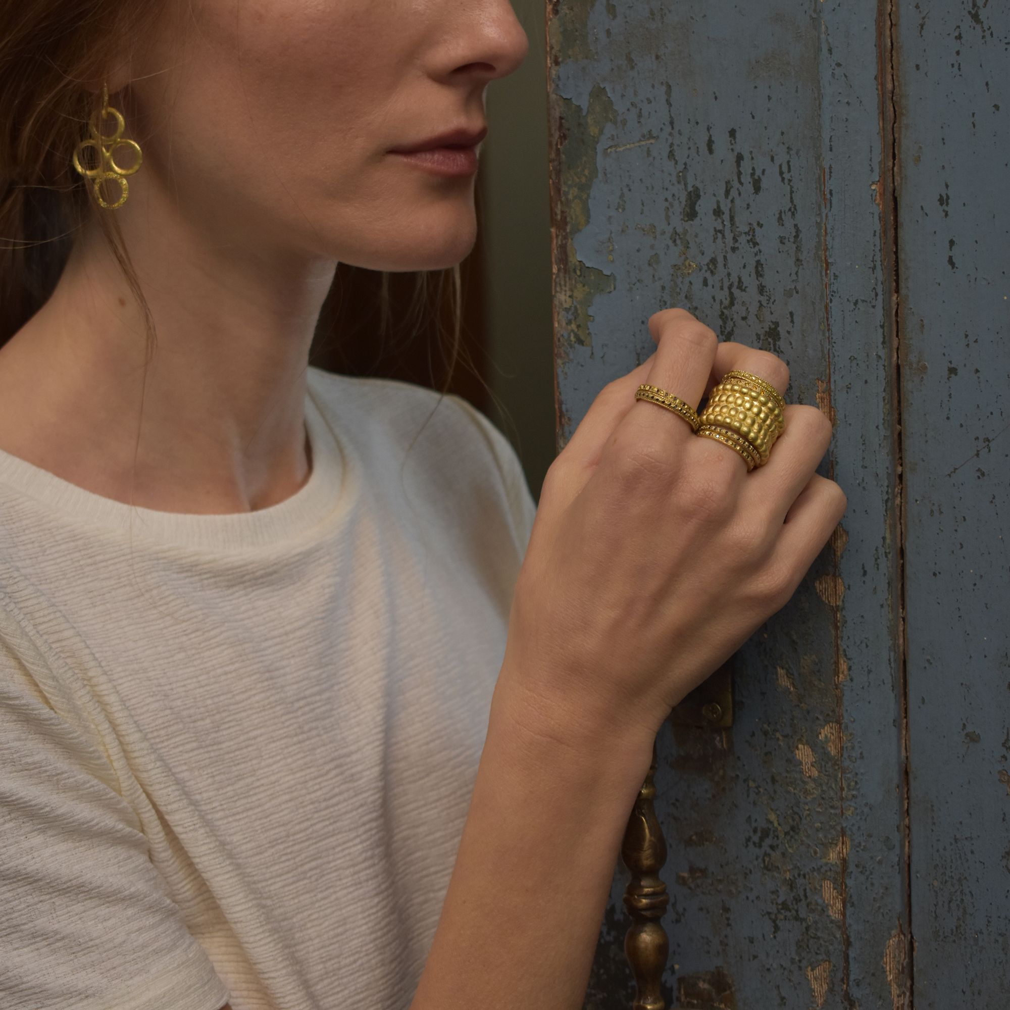 כמות של טבעת זהב 18 קראט בעיטור כדורים