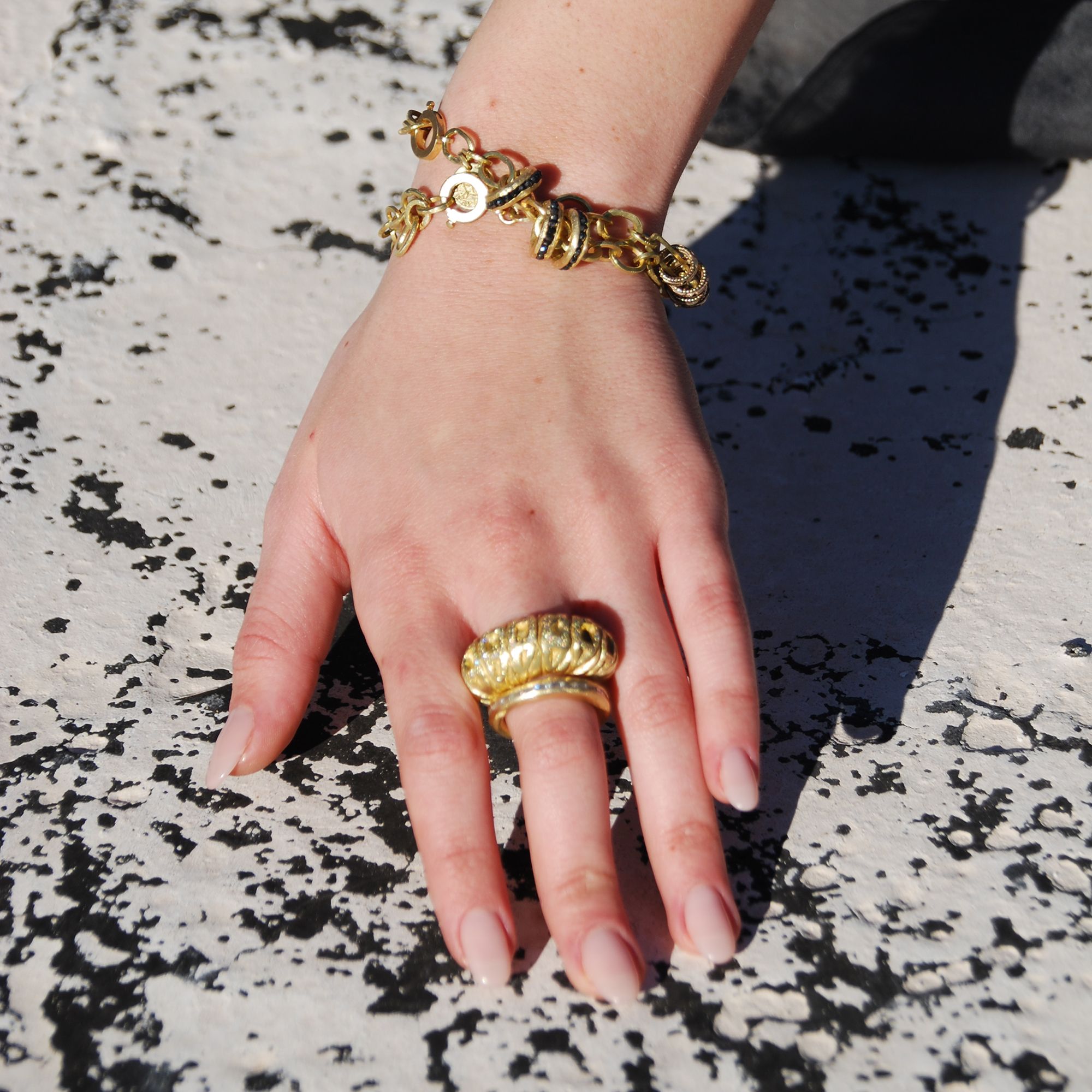 צמיד חוליות זהב 18 קראט עם טבעות תעלה