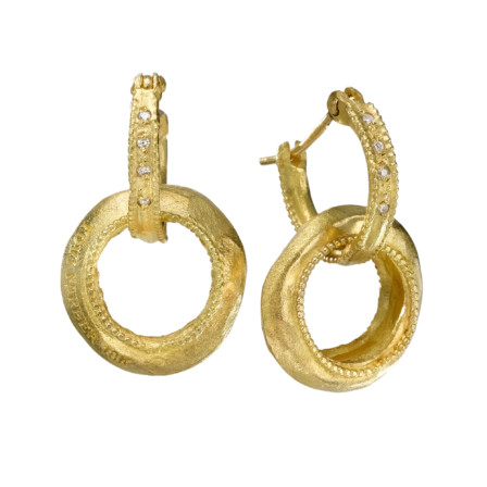 עגילי חישוק זהב 18 קראט עם תליון לוגו עגול לא מעובד