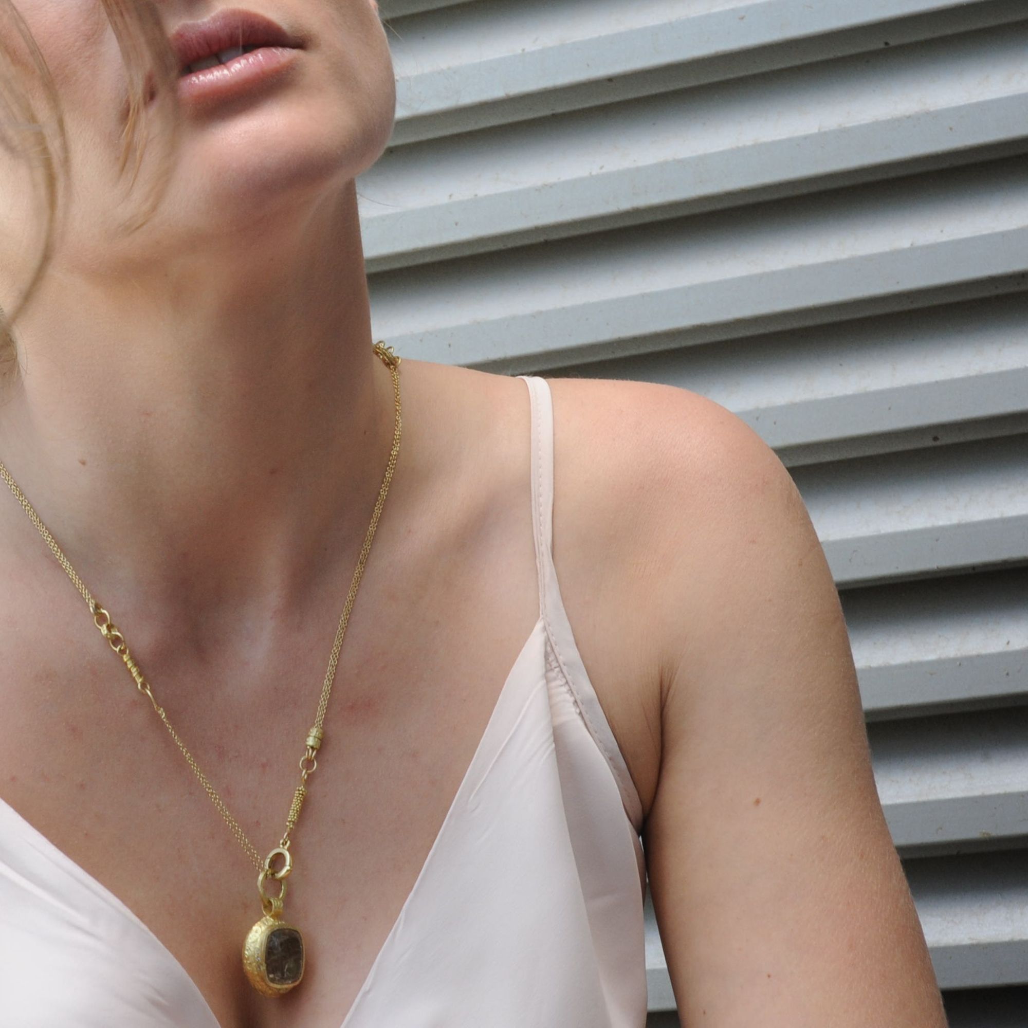 שרשרת ארוכה זהב 18 קראט עם תליון רוטיל קווארץ