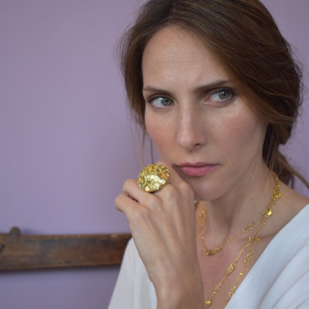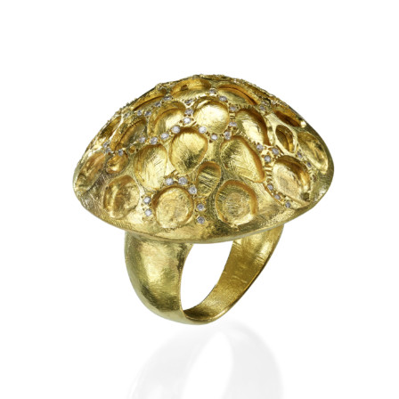 טבעת קמורה מפוסלת זהב 18 קראט