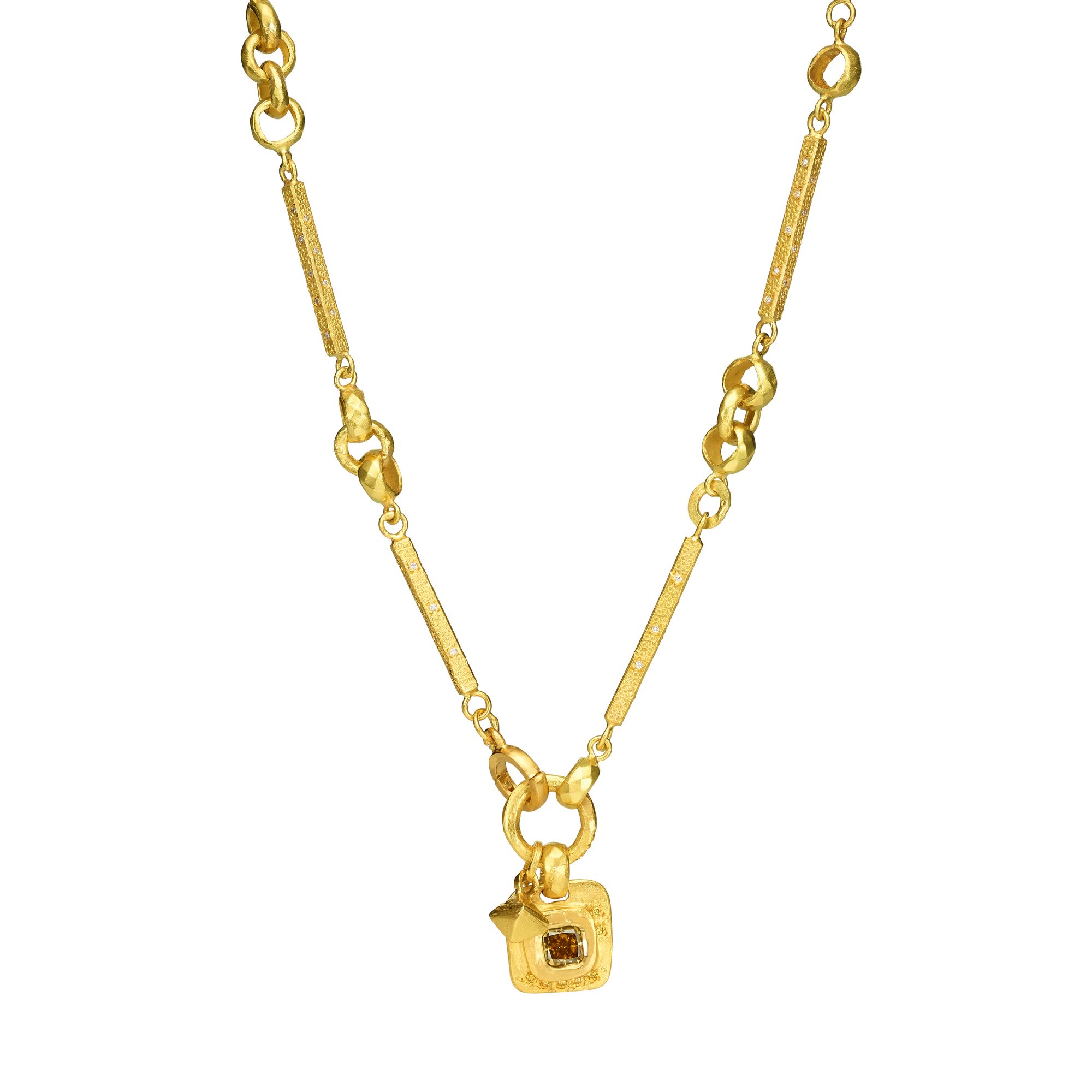 שרשרת מוטות זהב 18 קראט עם תליון יהלום ירוק ממוסגר