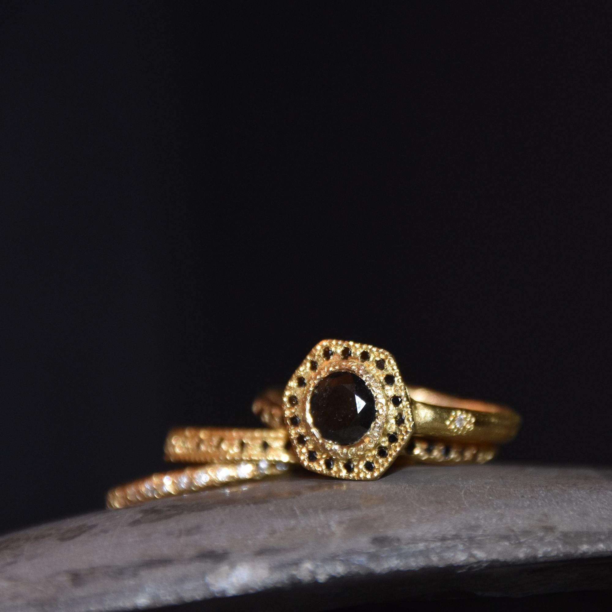 טבעת זהב 18 קראט עם יהלום שחור