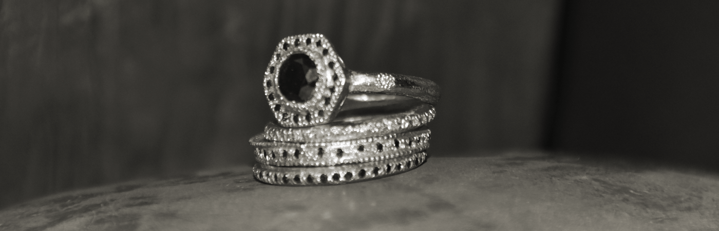 בשיבוץ יהלומים שחורים | משקל יהלומים כולל: 0.49 קראט